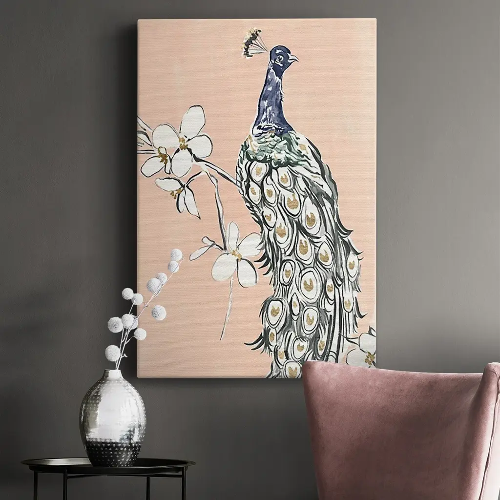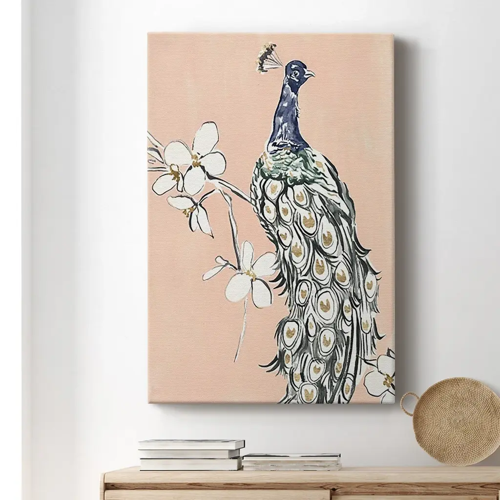 Peacock In Gold Iii Premium Gallery Wrapped Canvas - Ready To Hang - 24x36