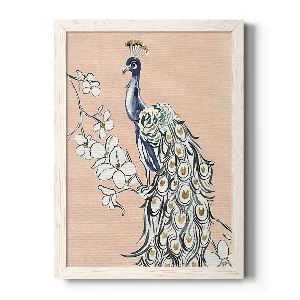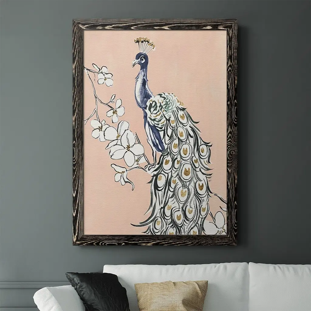 Peacock In Gold Iv-Premium Framed Canvas - Ready To Hang - 27.5x37.5 - Walnut