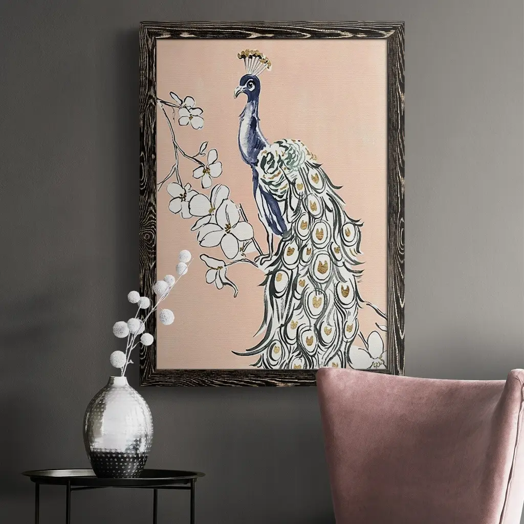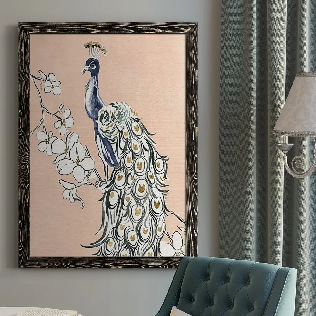 Peacock In Gold Iv-Premium Framed Canvas - Ready To Hang - 27.5x37.5 - White