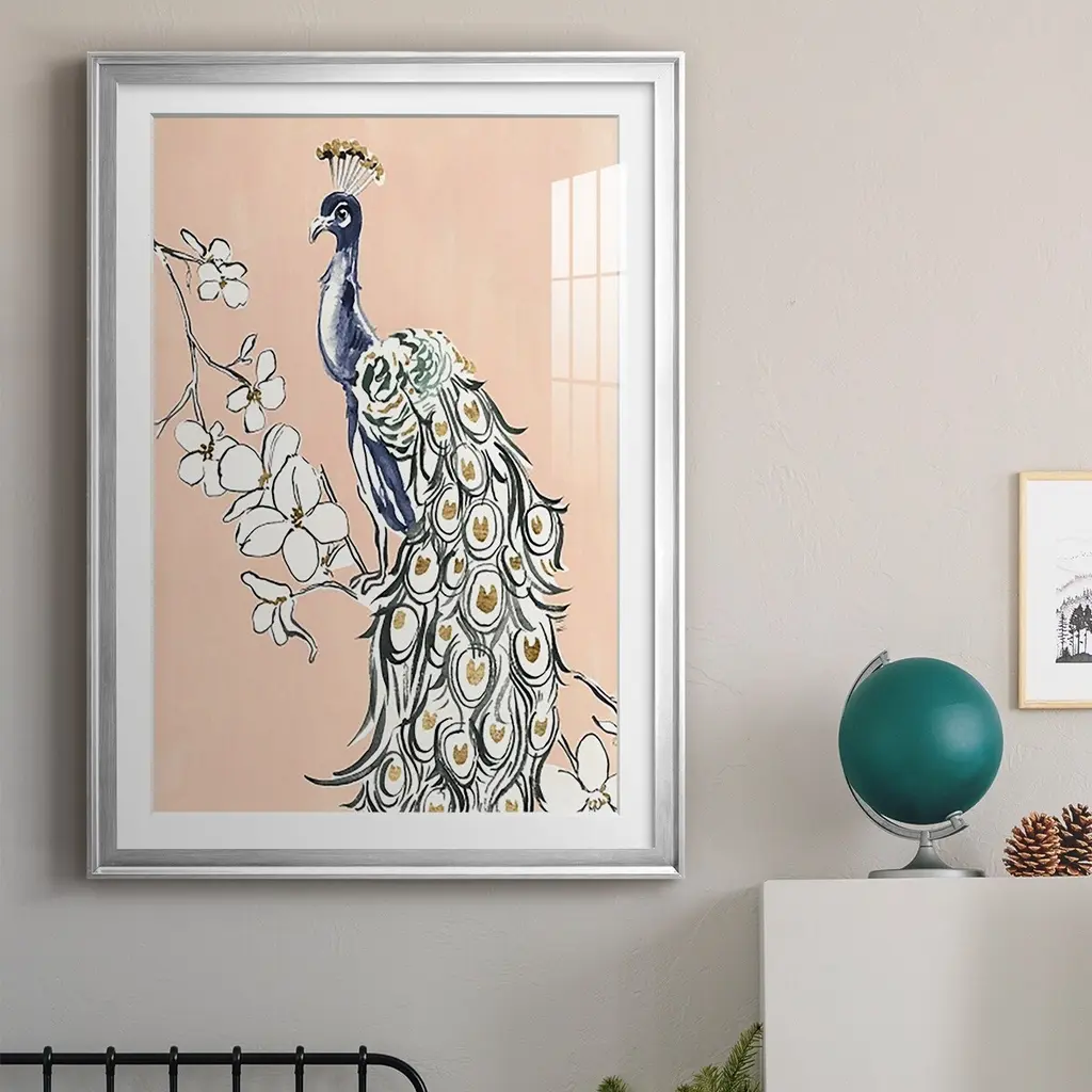 Peacock In Gold Iv Premium Framed Print - Ready To Hang - 22.5x30.5 - Silver