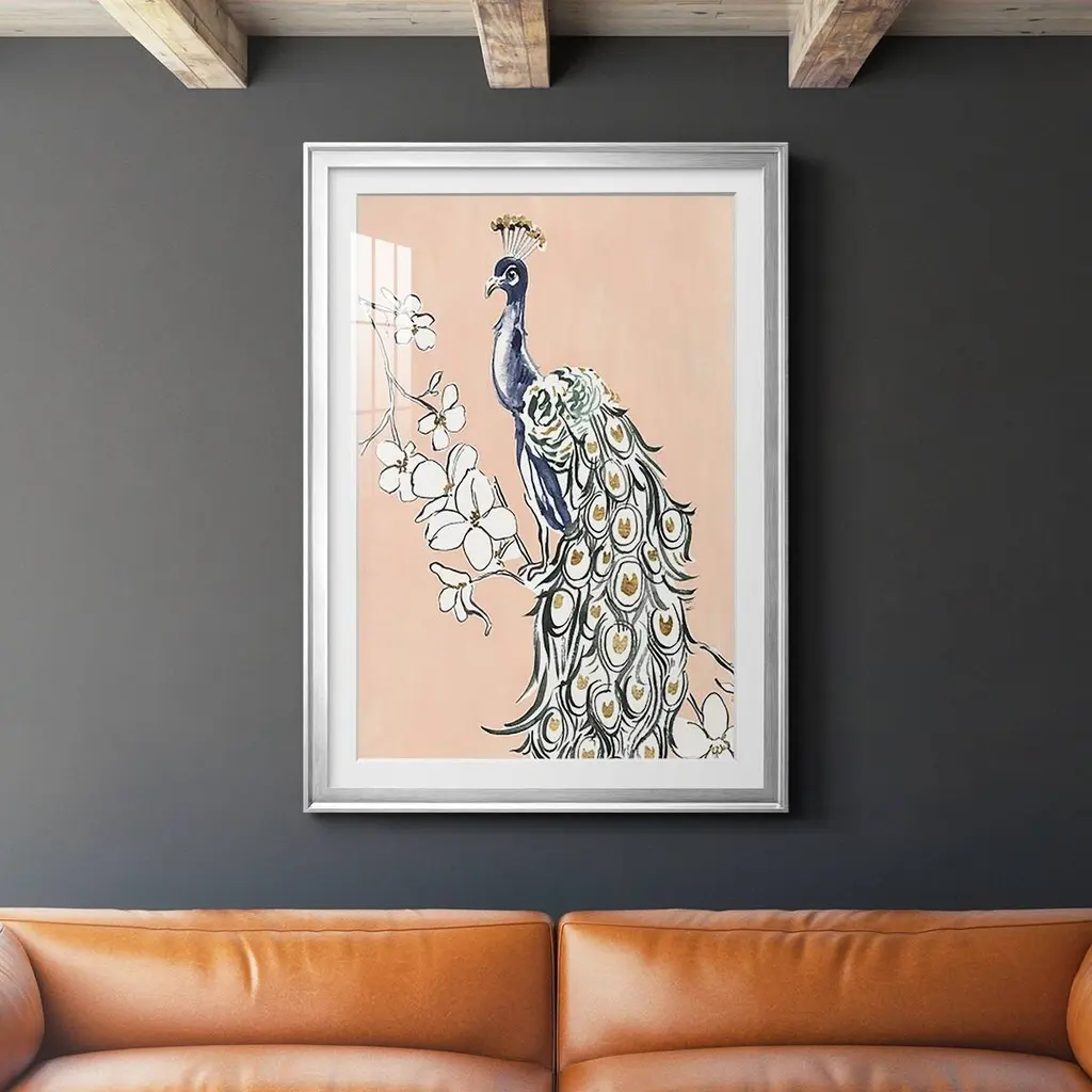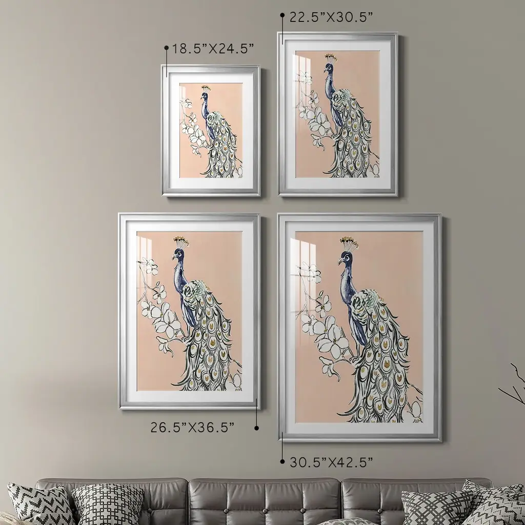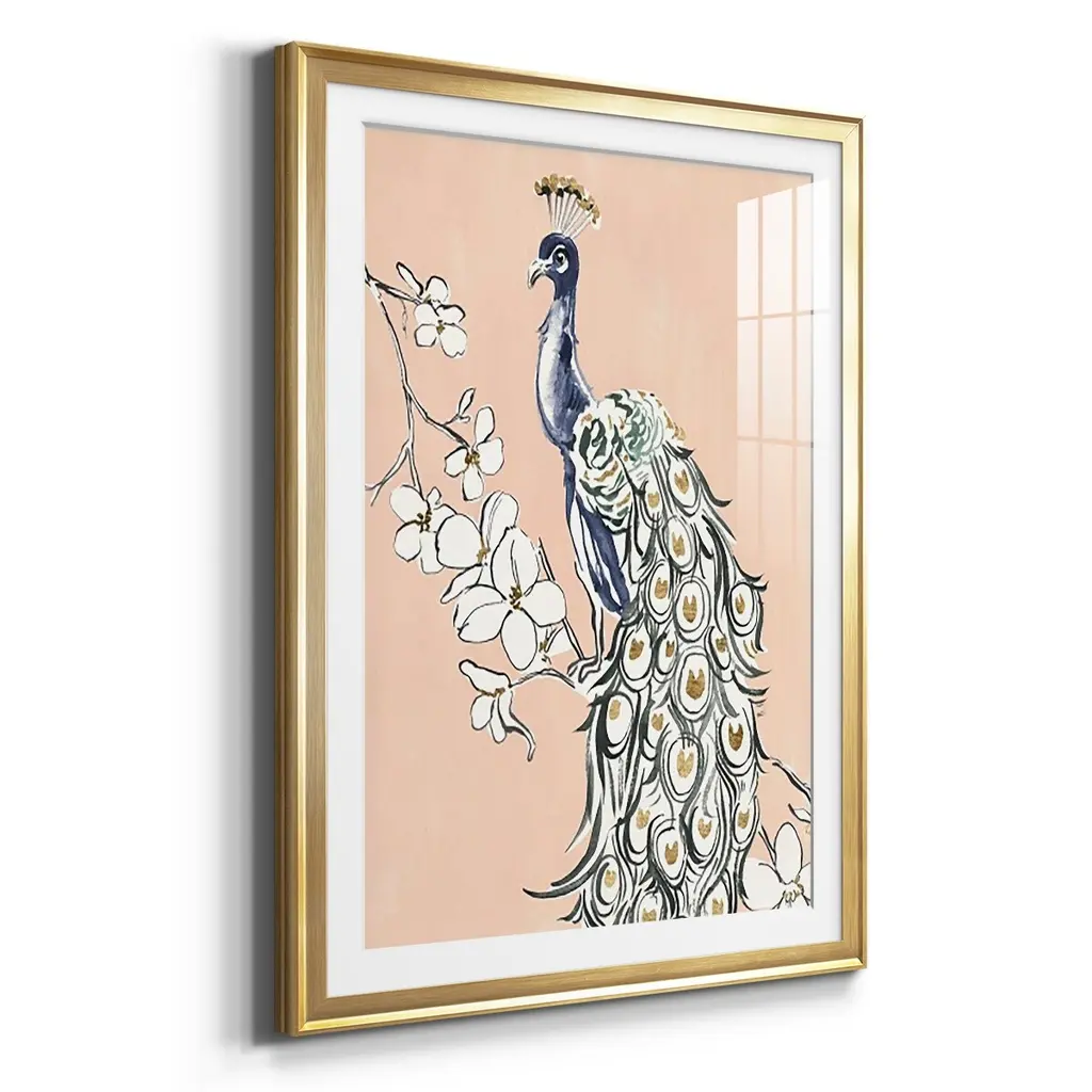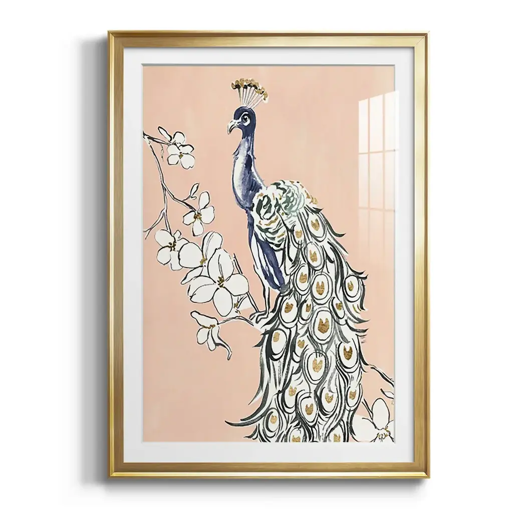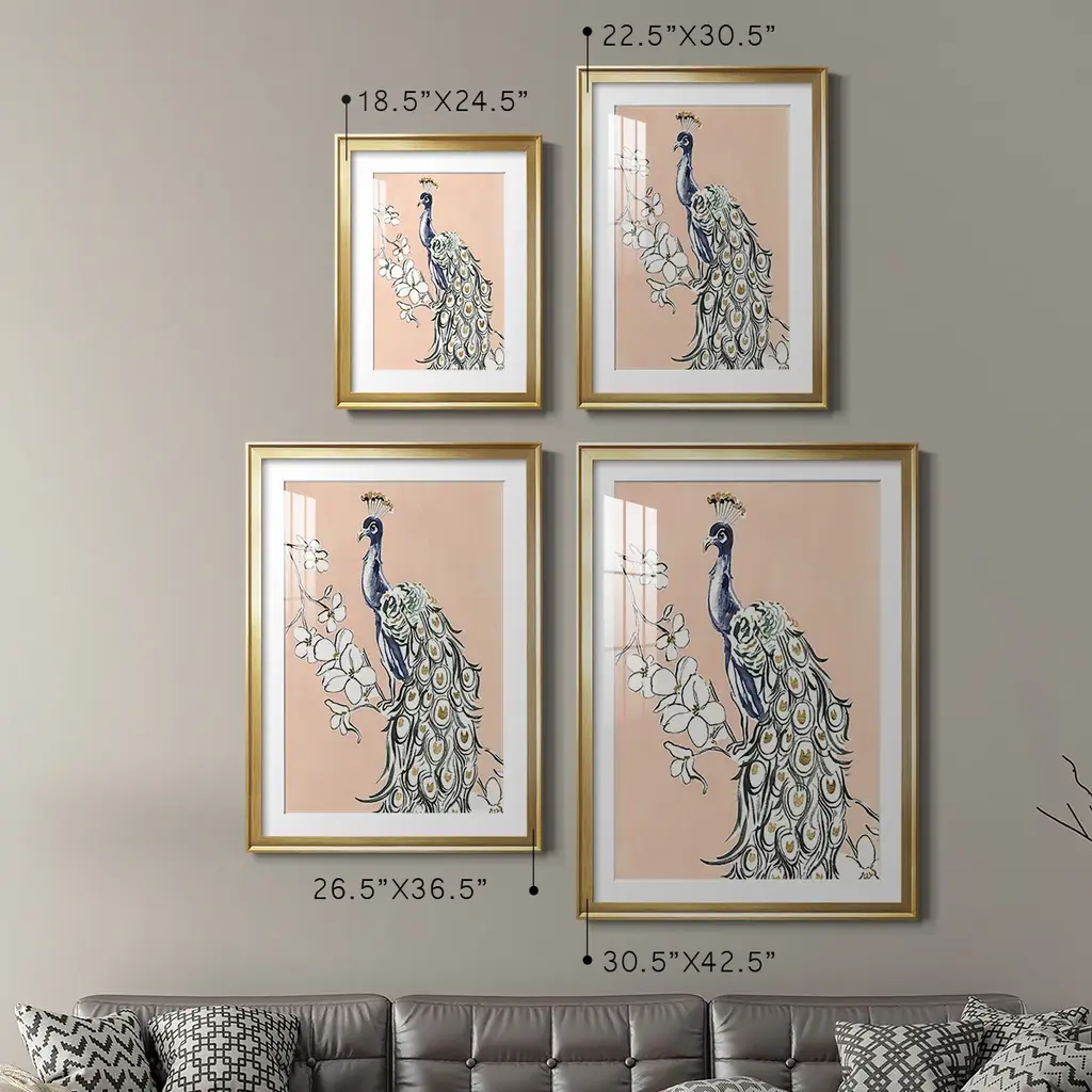 Peacock in Gold IV Premium Framed Print - Ready to Hang A Premium Framed Print created to last. Framed in distressed wood and available in an array of sizes and colors Featuring a beveled a solid wood stretcher bar, each piece comes ready to hand 4 SIZES AVAILABLE 30.5''X42.5'' - Overall Size 26.5'X36.5'' - Overall Size 22.5''x30.5'' - Overall Size 18.5''x24.5'' - Overall Size Each piece is made to order. Each piece comes with hanging hardware. Made in the USA Ready to Hang Giclee Paper Print Acrylic Glass Beveled Matt Board