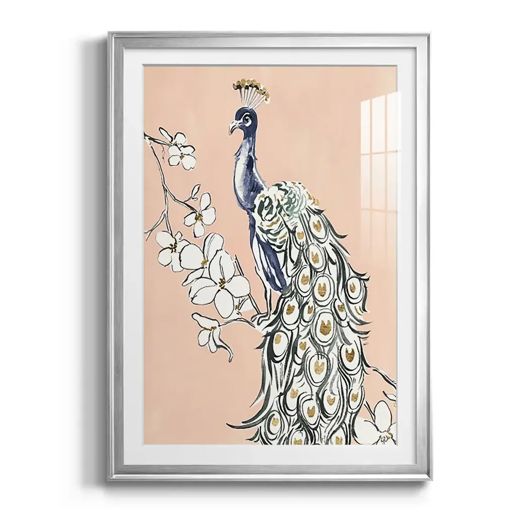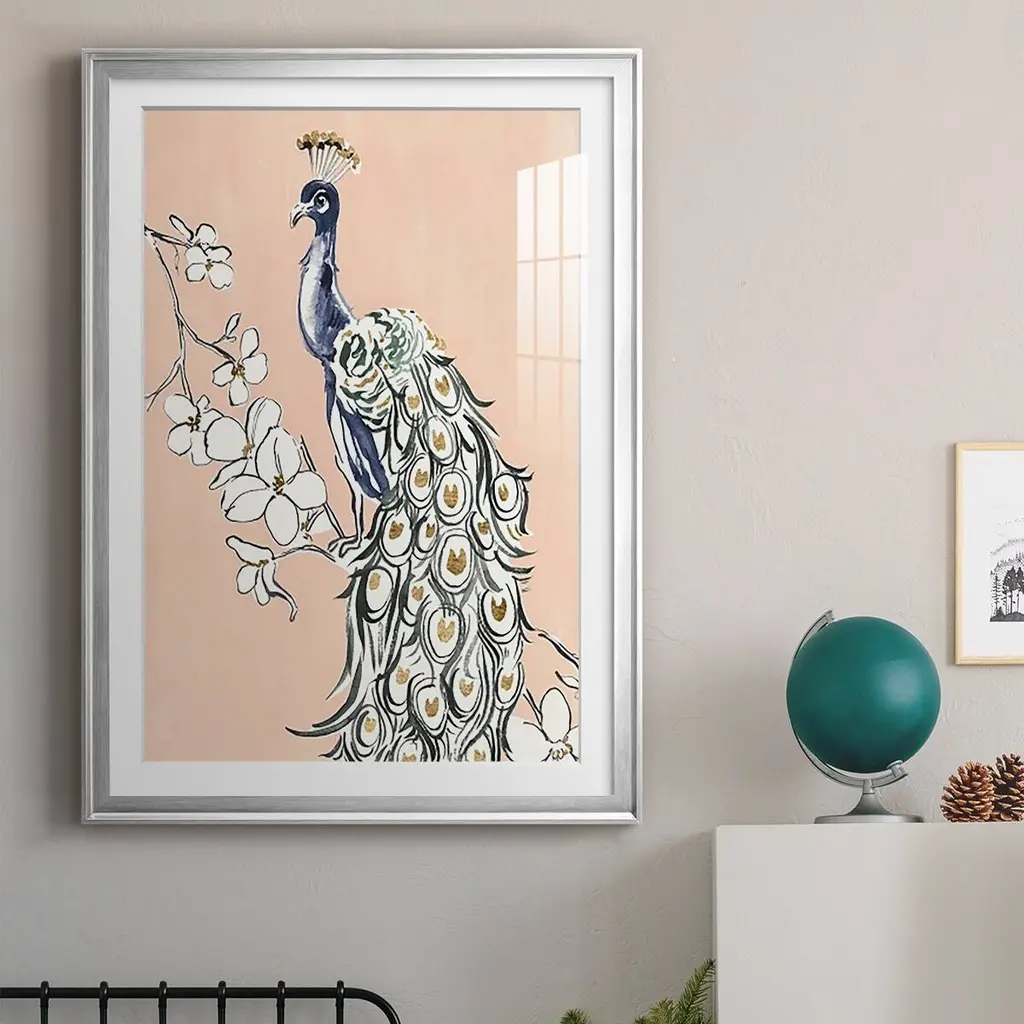 Peacock In Gold Iv Premium Framed Print - Ready To Hang - 26.5x36.5 - Silver