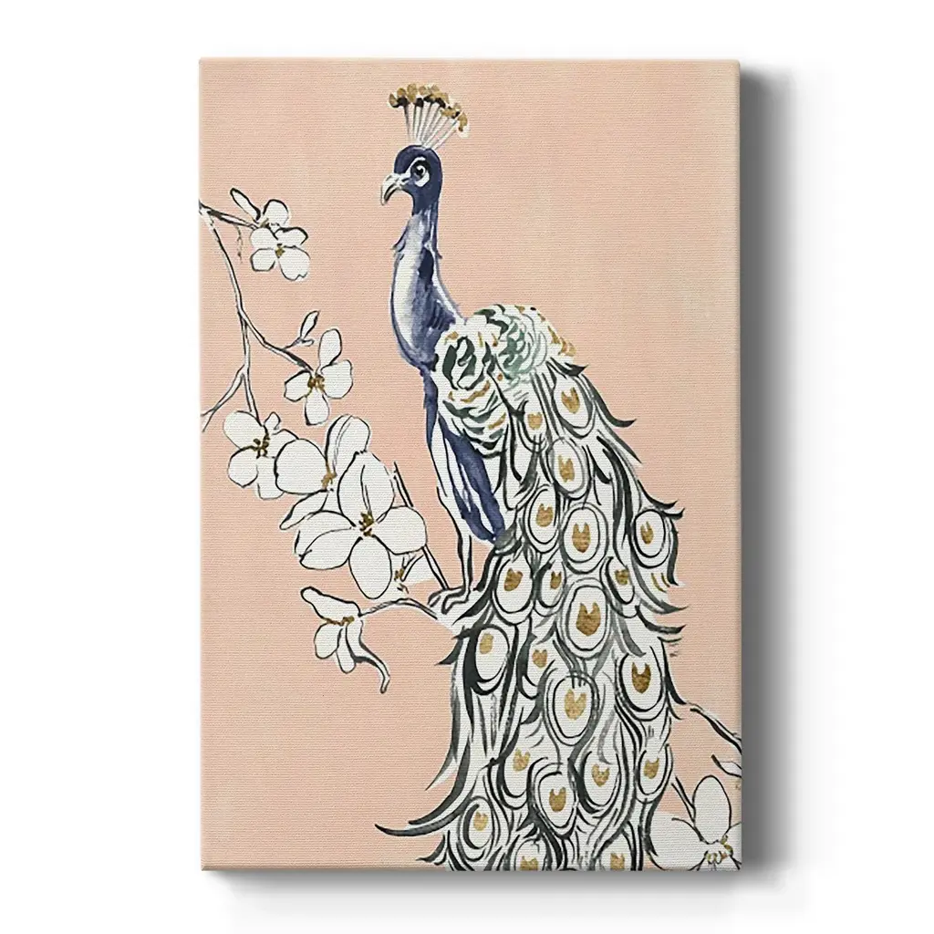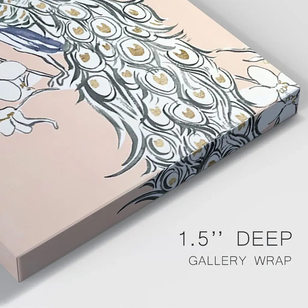 Peacock in Gold IV Premium Gallery Wrapped Canvas - Ready to Hang A premium hand stretched gallery wrapped canvas print created to last. Featuring a beveled a solid wood stretcher bar, each piece comes ready to hand 6 SIZES AVAILABLE 8''X12'' - Overall Size 12''X18'' - Overall Size 18''X27'' - Overall Size 24''x36'' - Overall Size 32''x48'' - Overall Size 40''x60'' - Overall Size Each piece is made to order. Built to Last Each piece comes ready to hang Solid wood stretcher Fade and Water resistant Made domestically