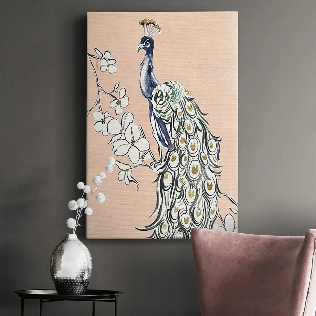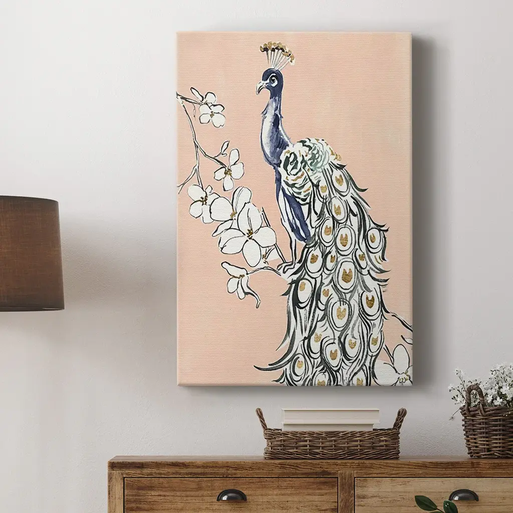 Peacock In Gold Iv Premium Gallery Wrapped Canvas - Ready To Hang - 32x48