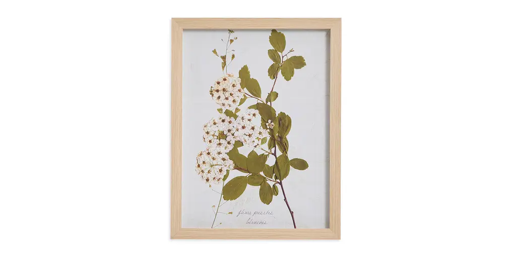 Pear Tree Blossom is one of nine prints in a collection of colorful botanicals displaying studies of florals and fronds that easily could have come right from a horticultural field guide! This work of art features an antiqued background, natural wood frame, and arrives ready to be hung on your wall. The pieces in this collection work beautifully as individuals or can be dislpayed in pairs, sets, or grids to make a statement - you get to become the artist by mixing and matching to create your favorite combination! All pieces in this collection designed, printed, and assembled in the USA.