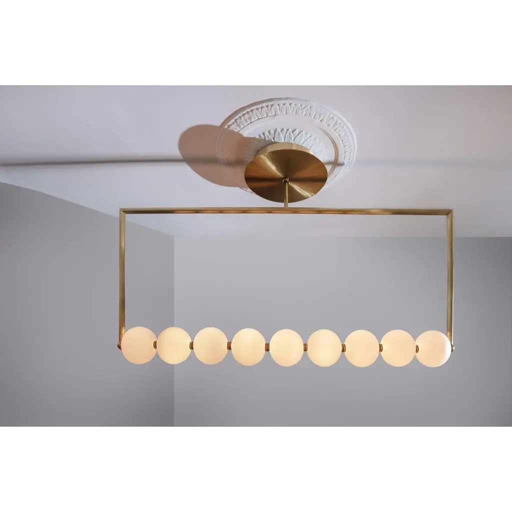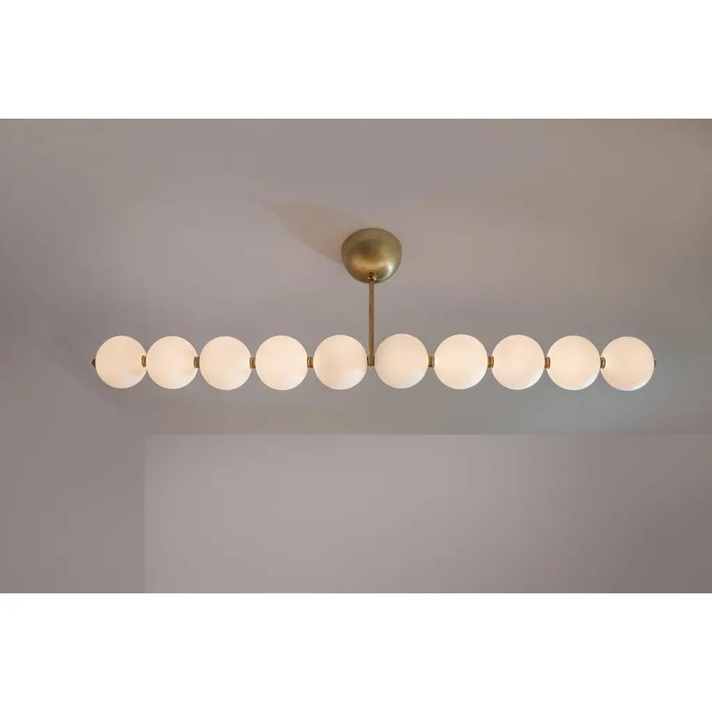 The pearl line by Ludovic Clément d'ArmontMaterials: Blown glass, brass joints, LEDsDimensions: D 12 x W 133 x H 37 cmThe Pearl line is a simple architectural element that helps structure a space. Depending on the shape you choose, it is symmetrical or asymmetrical, and it is a simple line of glass or a brooch-like jewel.Made in blown glass, with brass joints and LEDs.Every creation of Ludovic Clément d’Armont can be made to order in any requested dimensions.All our lamps can be wired according to each country. If sold to the USA it will be wired for the USA for instance.Ludovic Clément d’Armont is the creator of Semeur d’étoiles. That is the continuation of a family tradition of centuries of gentle glassmakers, painters, carpenters and artists. Both an engineer and an artist, he combines creative emotions with optical, electronic, thermal, environmental, electrical, chemical, color, energy, mechanical and medical considerations. His pleasure is do discuss with you to achieve the ideal piece.Ludovic presents his approach: “First, the simplicity of my work is based on a fundamental thought, nature and science are similar. My creative process marks the identity of mathematics and nature, the selective experimentation of the nature and human research lead to the same decisions.«That is why, analysis and experimentation mingle in my creation. Because the intelligence of nature is the long time of his experiments, just like that of man is the number of its research. The aesthetic result aims to illustrate and proclaim this, in a dreamy and amazed shout, showing the fusion of sciences and life. The place of man inside the Universe is thus clear: humanism becomes the demonstrated organization of society.»Semeur d’étoiles designs and manufactures lighting artworks: sculptures, chandeliers, lighting walls and ceilingsEco-friendly design is our DNA embarrassed by prestigious clients such as Vincent Darré, Bismut & Bismut, LVMH and State of Craft.