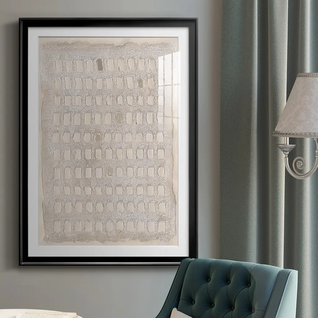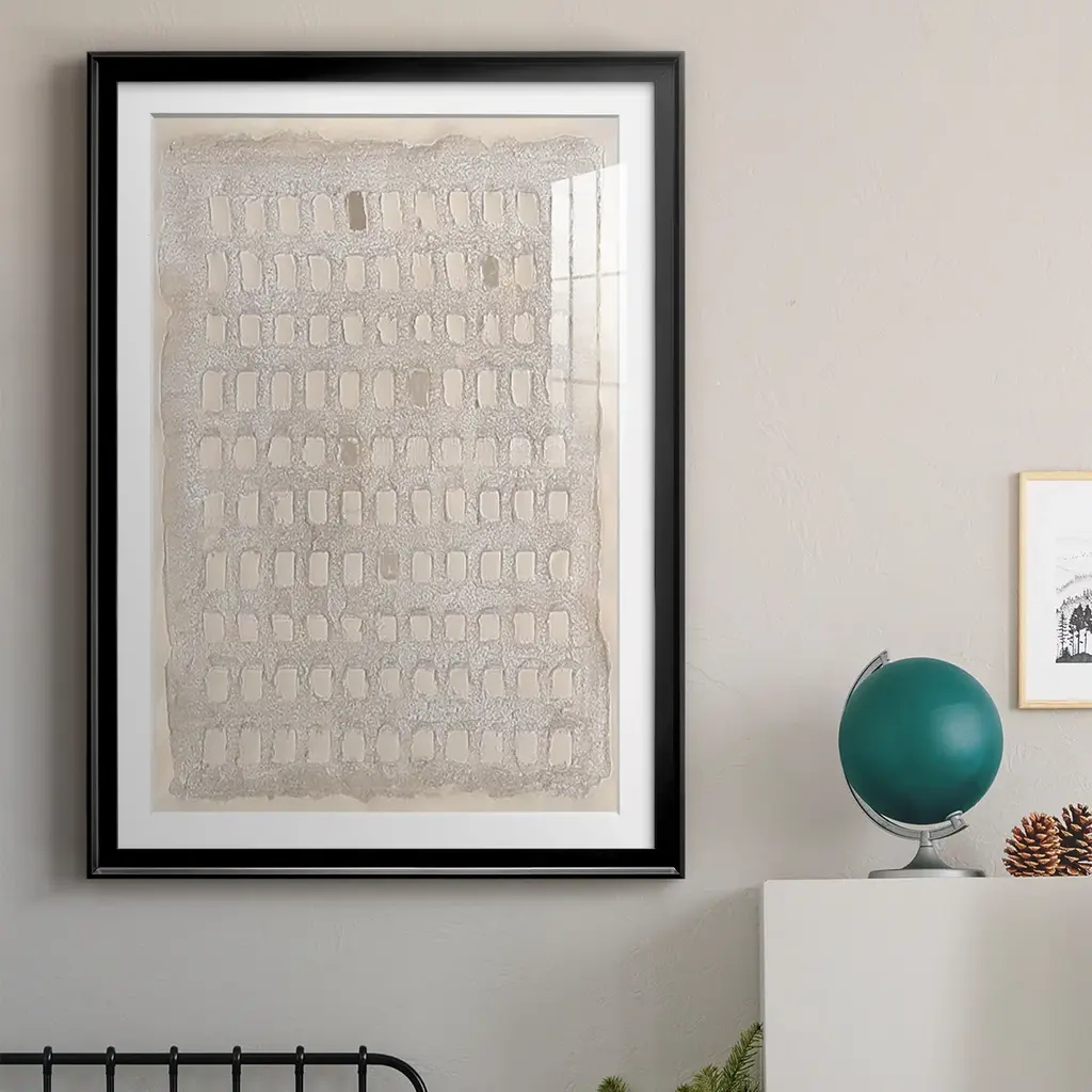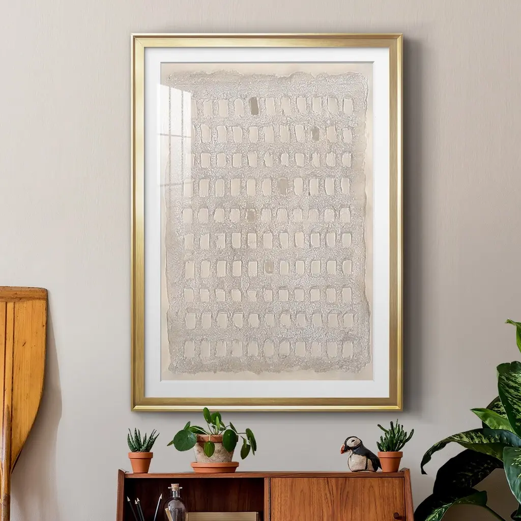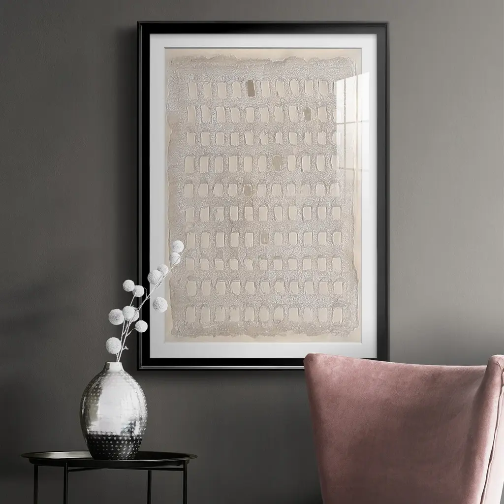 Pearl Punch Card I Premium Framed Print - Ready to Hang A Premium Framed Print created to last. Framed in distressed wood and available in an array of sizes and colors Featuring a beveled a solid wood stretcher bar, each piece comes ready to hand 4 SIZES AVAILABLE 30.5''X42.5'' - Overall Size 26.5'X36.5'' - Overall Size 22.5''x30.5'' - Overall Size 18.5''x24.5'' - Overall Size Each piece is made to order. Each piece comes with hanging hardware. Made in the USA Ready to Hang Giclee Paper Print Acrylic Glass Beveled Matt Board