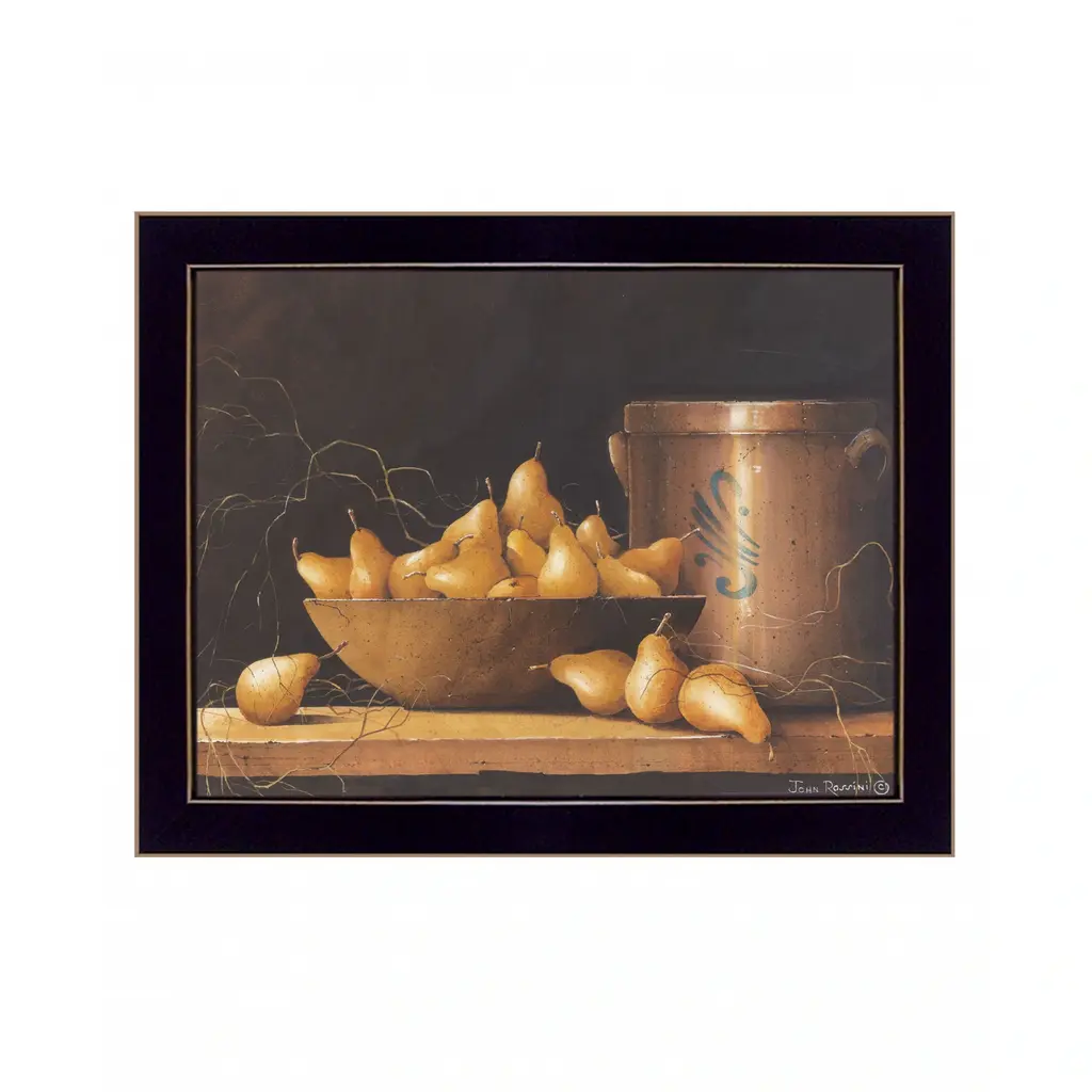Add an air of fashion to your room and rejuvenate the space with this pears and crocks 2 black framed print wall art. This print is a visual artistic expression that allows you to decorate your space in style. Reproduced for you on paper, this hanging decorative accent will be a trendy and fashionable way to dress your walls. Adding this hanging wall art to your space to make your room feel more finished and attractive. Instantly liven up your space with this art that brings color and dimension to your walls. 14" H x 18" W x 1" D