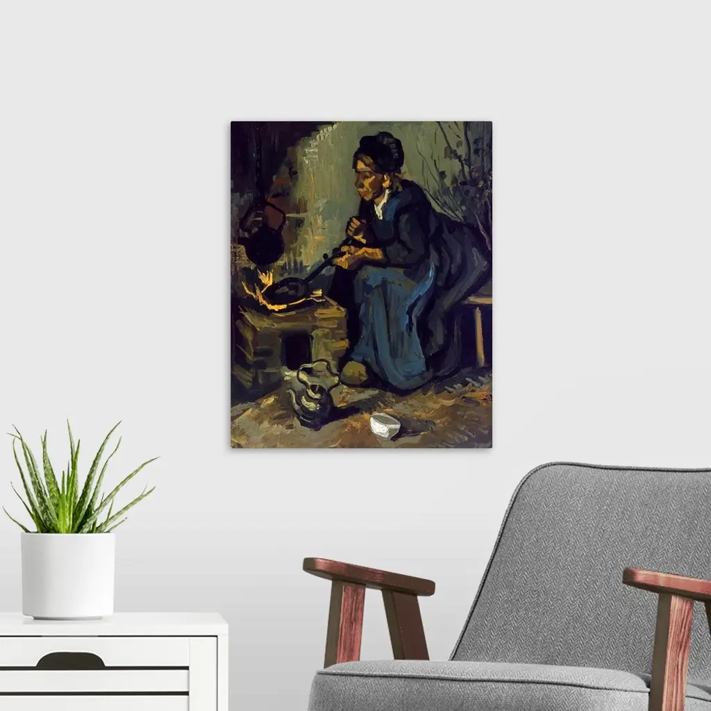 This work was made in Nuenen in late spring 1885, just after Van Gogh completed The Potato Eaters (Van Gogh Museum, Amsterdam), in the same dark hues that reminded the artist of green soap or a really dusty potato, unpeeled of course. Van Gogh was convinced that in the long run it produces better results to paint [peasants] in their coarseness than to introduce conventional sweetness; If a peasant painting smells of bacon, smoke, potato steam-fine-that's not unhealthy-if a stable smells of manure-very well, that's what a stable's for.