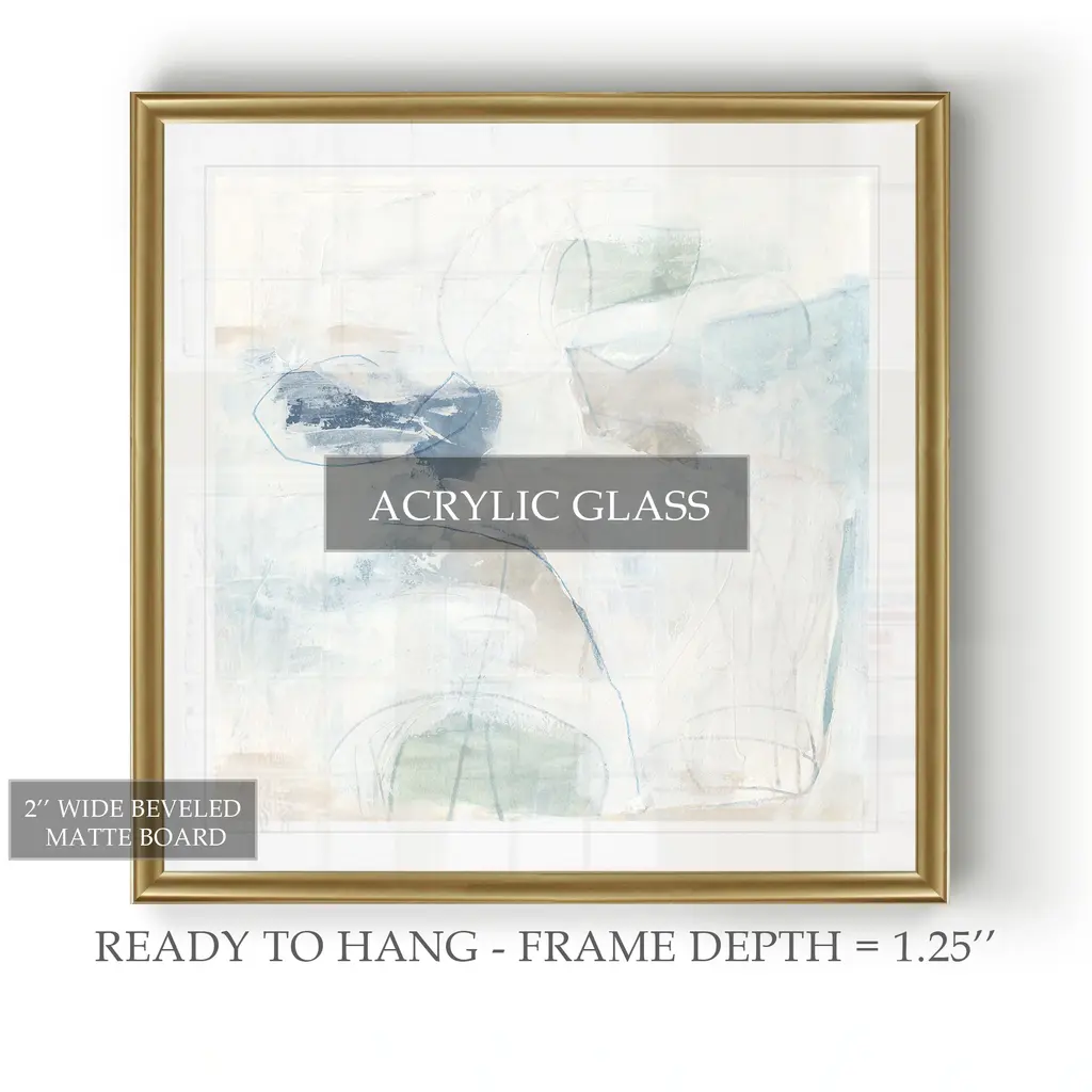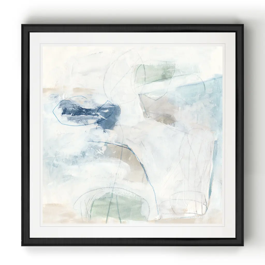 Pebble Coast I -Black Framed Print A premium Black Framed giclee print Featuring a beveled a matt , acrylic glass, and a high quality giclee print 5 SIZES AVAILABLE 34''x34''- Overall Size 30''x30'' - Overall Size 26''x26''' - Overall Size 22''x22''' - Overall Size 18''x18''' - Overall Size Each piece is made to order. Built to Last Each piece comes ready to hang Fade and Water resistant Made domestically