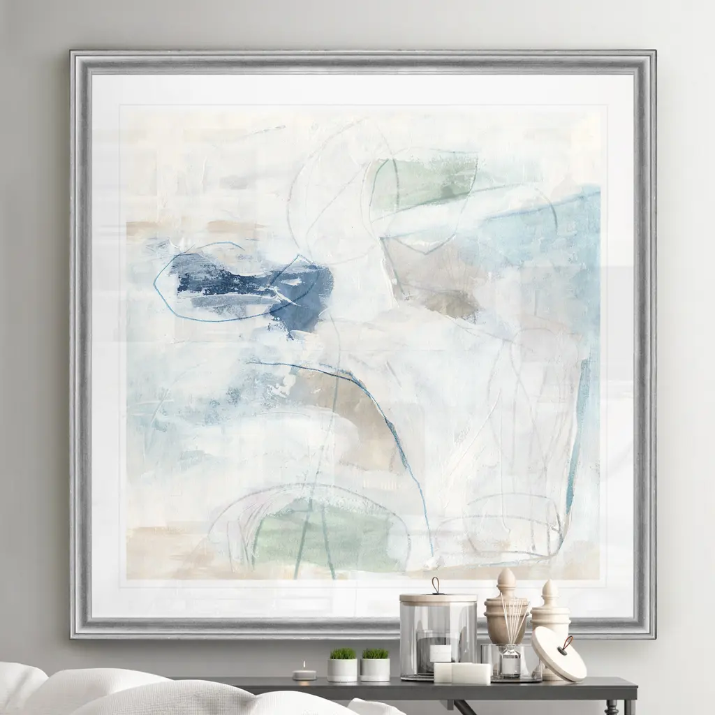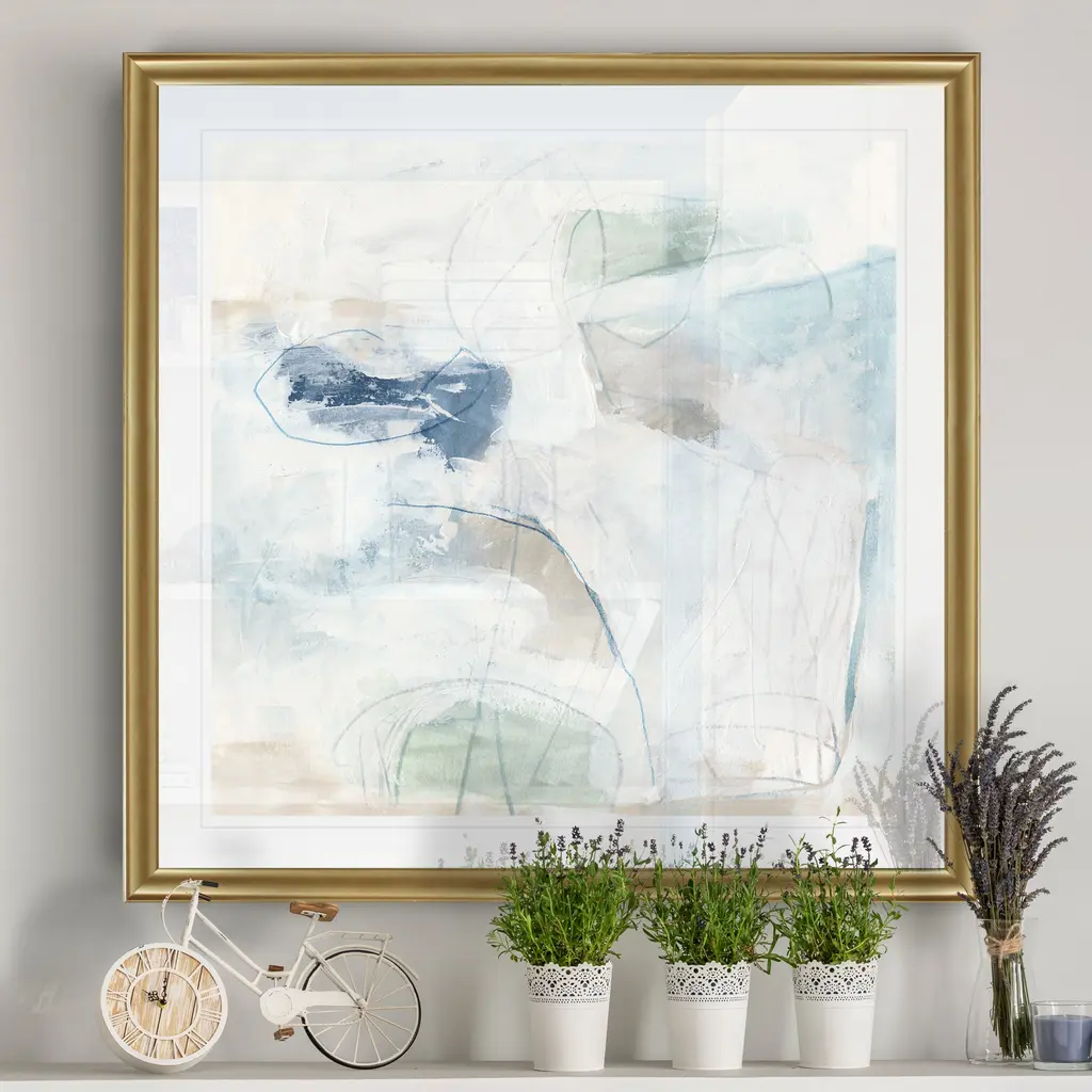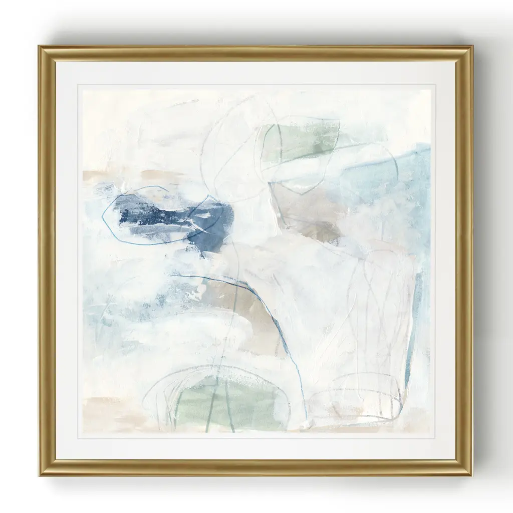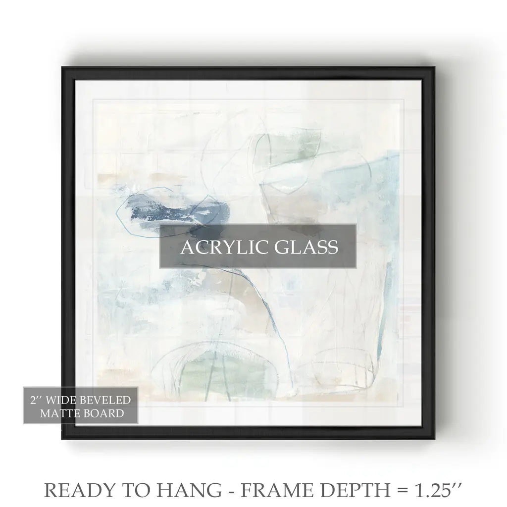 Pebble Coast I -Black Framed Print A premium Black Framed giclee print Featuring a beveled a matt , acrylic glass, and a high quality giclee print 5 SIZES AVAILABLE 34''x34''- Overall Size 30''x30'' - Overall Size 26''x26''' - Overall Size 22''x22''' - Overall Size 18''x18''' - Overall Size Each piece is made to order. Built to Last Each piece comes ready to hang Fade and Water resistant Made domestically
