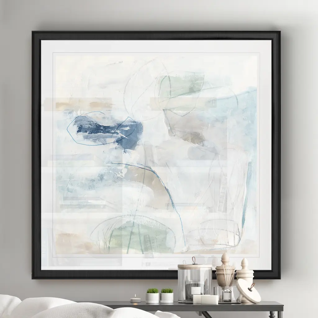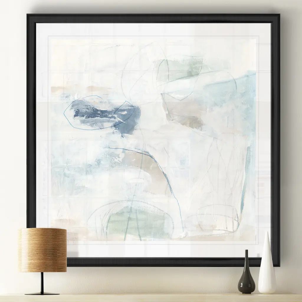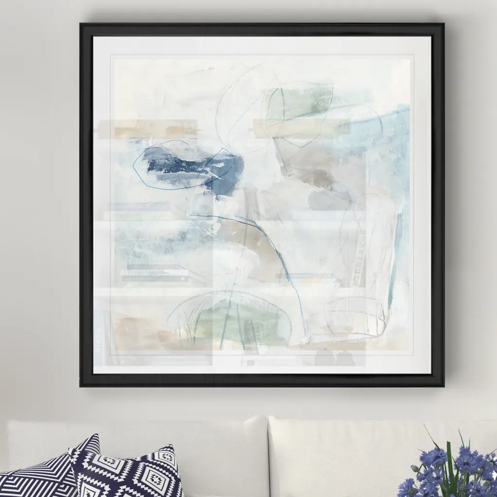Pebble Coast I -Black Framed Print A premium Black Framed giclee print Featuring a beveled a matt , acrylic glass, and a high quality giclee print 5 SIZES AVAILABLE 34''x34''- Overall Size 30''x30'' - Overall Size 26''x26''' - Overall Size 22''x22''' - Overall Size 18''x18''' - Overall Size Each piece is made to order. Built to Last Each piece comes ready to hang Fade and Water resistant Made domestically