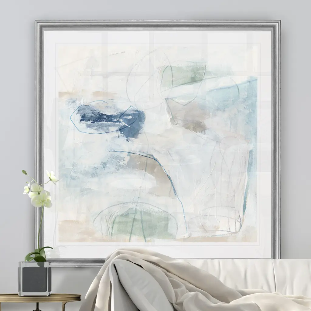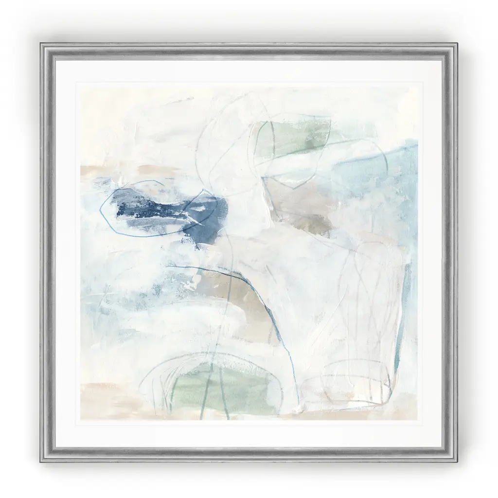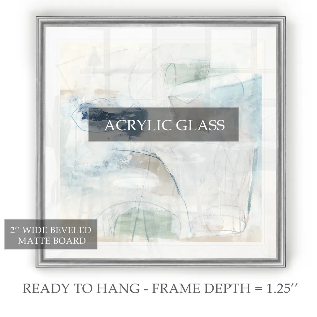 Pebble Coast I -Black Framed Print A premium Black Framed giclee print Featuring a beveled a matt , acrylic glass, and a high quality giclee print 5 SIZES AVAILABLE 34''x34''- Overall Size 30''x30'' - Overall Size 26''x26''' - Overall Size 22''x22''' - Overall Size 18''x18''' - Overall Size Each piece is made to order. Built to Last Each piece comes ready to hang Fade and Water resistant Made domestically