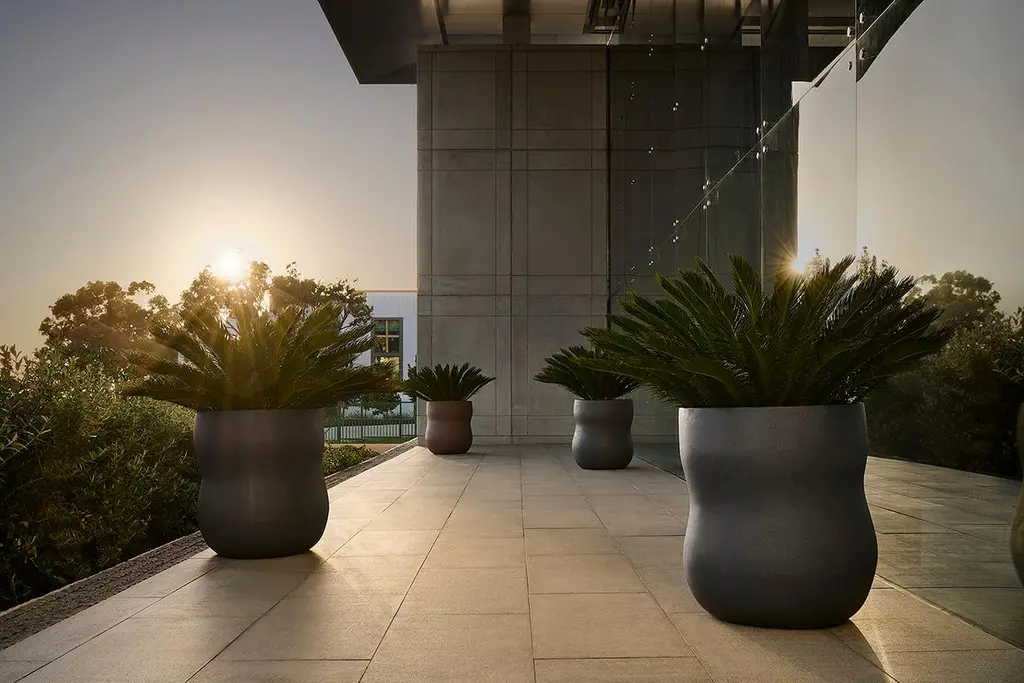 Pebble Medium Terracotta Planter by IndigenusDesigned by Yabu PushelbergDimensions: Ø 84,5 x H 86 cm.Materials: Stone.Weight: 84 kg.Different colors and sizes are available. Please contact us.Pebble is characterised by its soft organic form suitable for any style and environment. The Pebble follows an asymmetrical design with a beautiful play on negative space. Inspired by nature, the partnership between YabuPushelberg and Indigenus sought to honour this muse by celebrating the amorphous forms found in nature, translating the soft forms into a family of concrete planters. Despite its size, the Pebble contributes in abundance to the look and feel of any space.Designed to stand together or independently, the Pebble planters have been crafted to support larger plants and trees.Indigenus, founded in 2014, is the brainchild of Cape Town local, Peter van der Post. At the beginning of his career, whilst working in roto-moulding, Peter noticed a lack of high design planters in the market and the vision to produce the most beautiful, original, and desirable planters began to grow. Over the past 8 years, the Indigenus team has collaborated with South Africa’s top designers to create planters that are art pieces in their own right. 2022 has seen exciting collaborations further afield with internationally renowned designers and collaborators. In line with our sustainability and quality luxury objectives, we are constantly striving to make planters for life and not just for a few seasons. It has taken years of refinement, many valuable lessons learned and, ultimately, setting up our world-class factory for in-house manufacturing to be able to ensure that the planters are of the highest quality. All materials are sustainably sourced and the planters are made by hand. It is this craftsmanship that puts Indigenus in a league of its own. Each range of planters is unique and illustrates the impact that beautiful sculptural planters have on architecture and landscapes. The planters' close connection to the earth is expressed through a stable and grounded design, made with beautiful natural materials and evoking an underlying story of our relationship with the natural world.Indigenus is focused on collaboration with the world’s top designers and artists. We are committed to constant refinement and a willingness to be courageous, curious, and experimental with natural materials and new designs. We have built solid distributor networks and relationships that we are committed to maintaining and growing globally. We are proud of our roots as an African luxury brand with a global footprint.