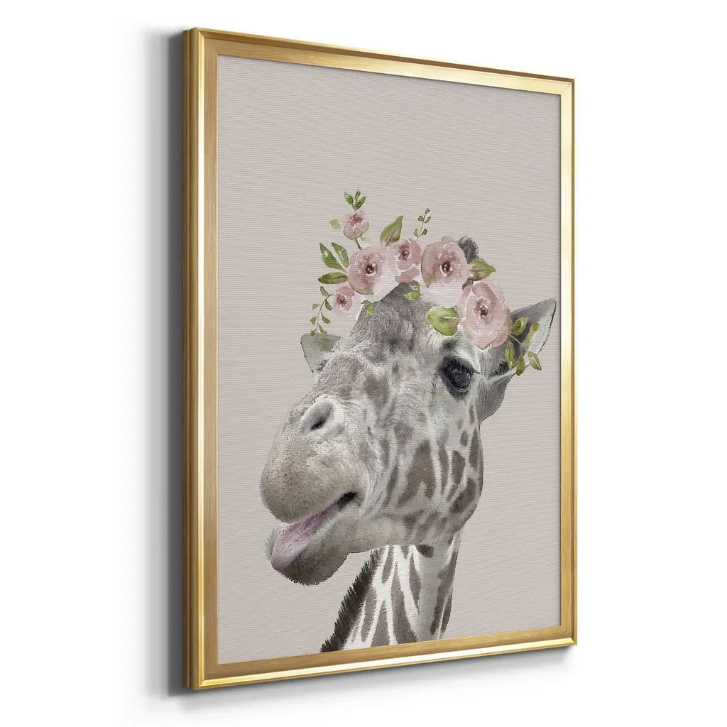 Peek A Boo Giraffe I Premium Framed Print - Ready to Hang A Premium Framed Print created to last. Framed in distressed wood and available in an array of sizes and colors Featuring a beveled a solid wood stretcher bar, each piece comes ready to hand 4 SIZES AVAILABLE 30.5''X42.5'' - Overall Size 26.5'X36.5'' - Overall Size 22.5''x30.5'' - Overall Size 18.5''x24.5'' - Overall Size Each piece is made to order. Each piece comes with hanging hardware. Made in the USA Ready to Hang