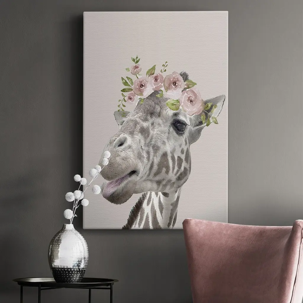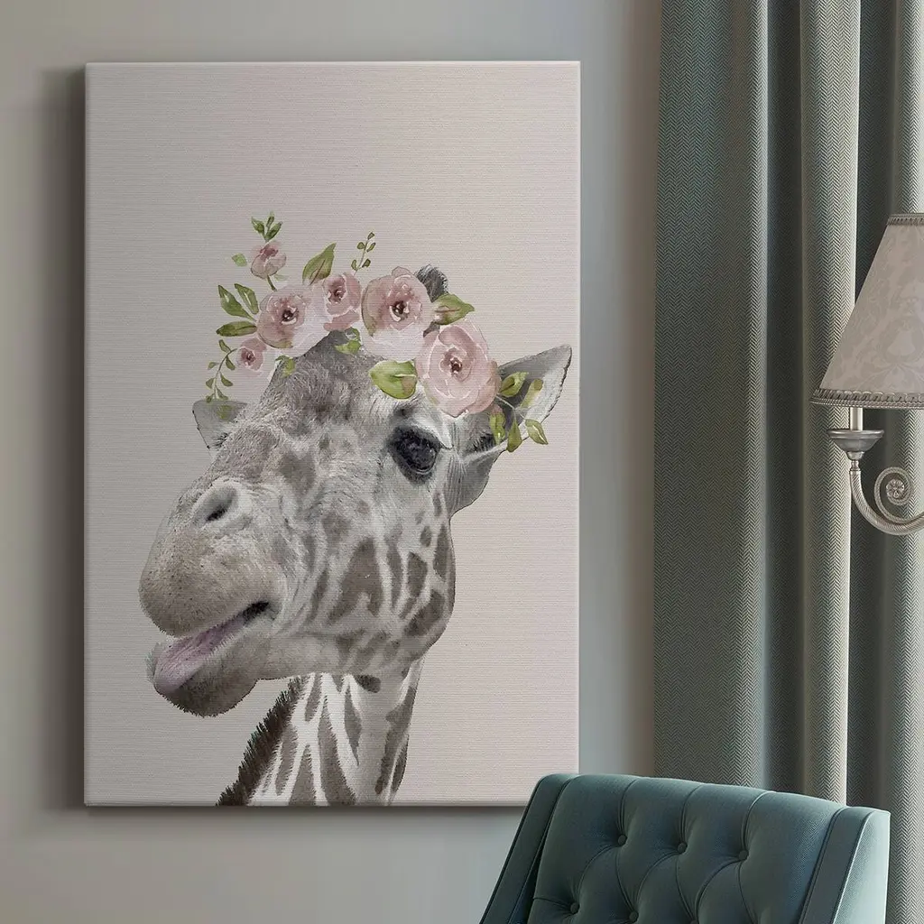 Peek A Boo Giraffe I Premium Gallery Wrapped Canvas - Ready to Hang A premium hand stretched gallery wrapped canvas print created to last. Featuring a beveled a solid wood stretcher bar, each piece comes ready to hand 6 SIZES AVAILABLE 8''X12'' - Overall Size 12''X18'' - Overall Size 18''X27'' - Overall Size 24''x36'' - Overall Size 32''x48'' - Overall Size 40''x60'' - Overall Size Each piece is made to order. Built to Last Each piece comes ready to hang Solid wood stretcher Fade and Water resistant Made domestically