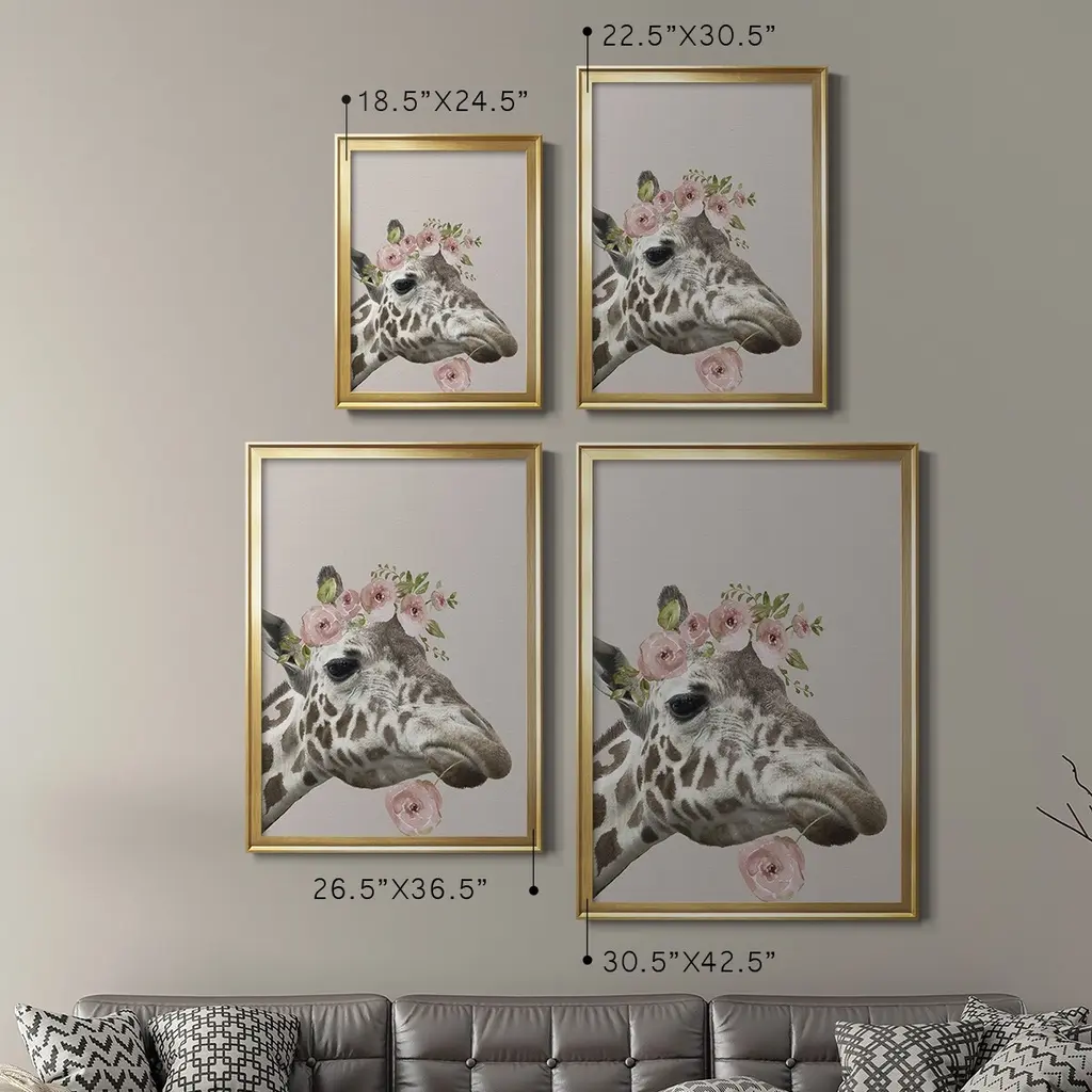 Peek A Boo Giraffe II Premium Framed Print - Ready to Hang A Premium Framed Print created to last. Framed in distressed wood and available in an array of sizes and colors Featuring a beveled a solid wood stretcher bar, each piece comes ready to hand 4 SIZES AVAILABLE 30.5''X42.5'' - Overall Size 26.5'X36.5'' - Overall Size 22.5''x30.5'' - Overall Size 18.5''x24.5'' - Overall Size Each piece is made to order. Each piece comes with hanging hardware. Made in the USA Ready to Hang