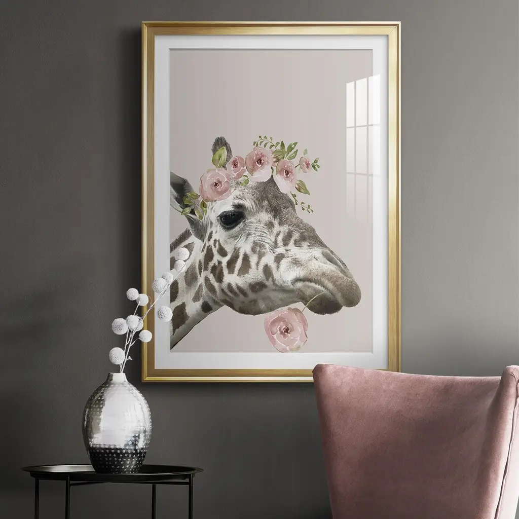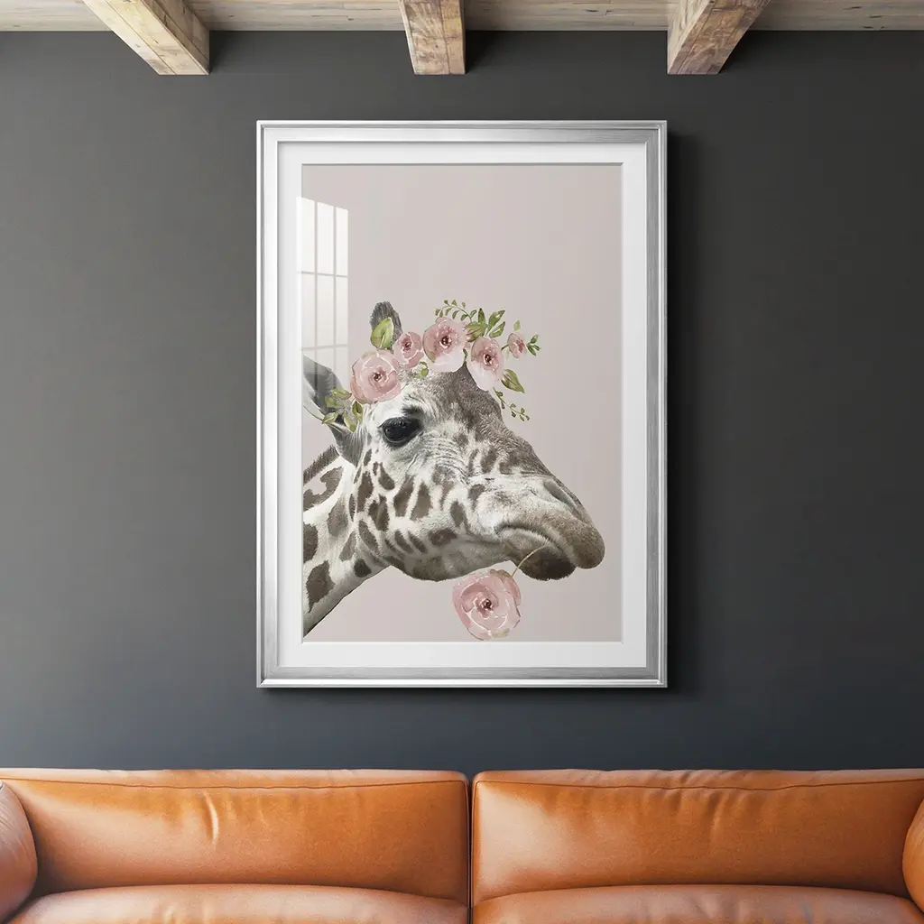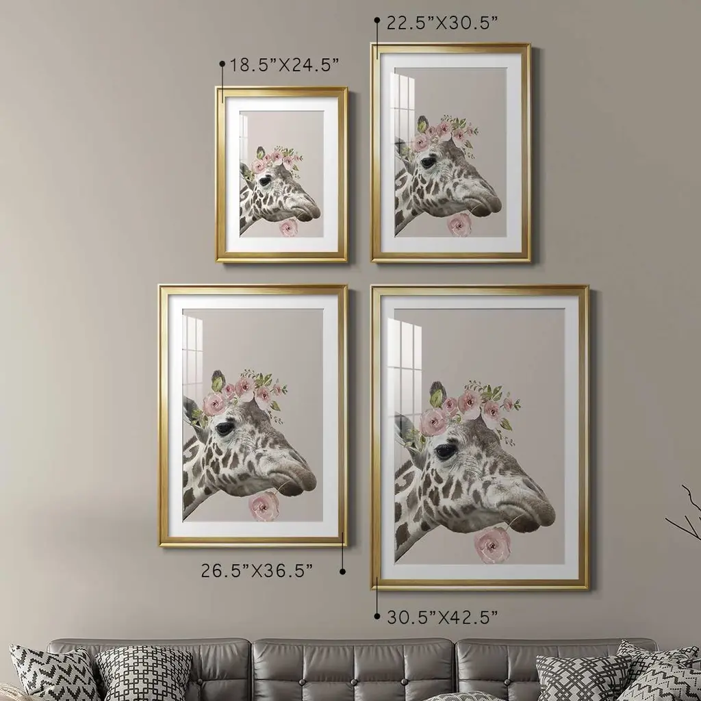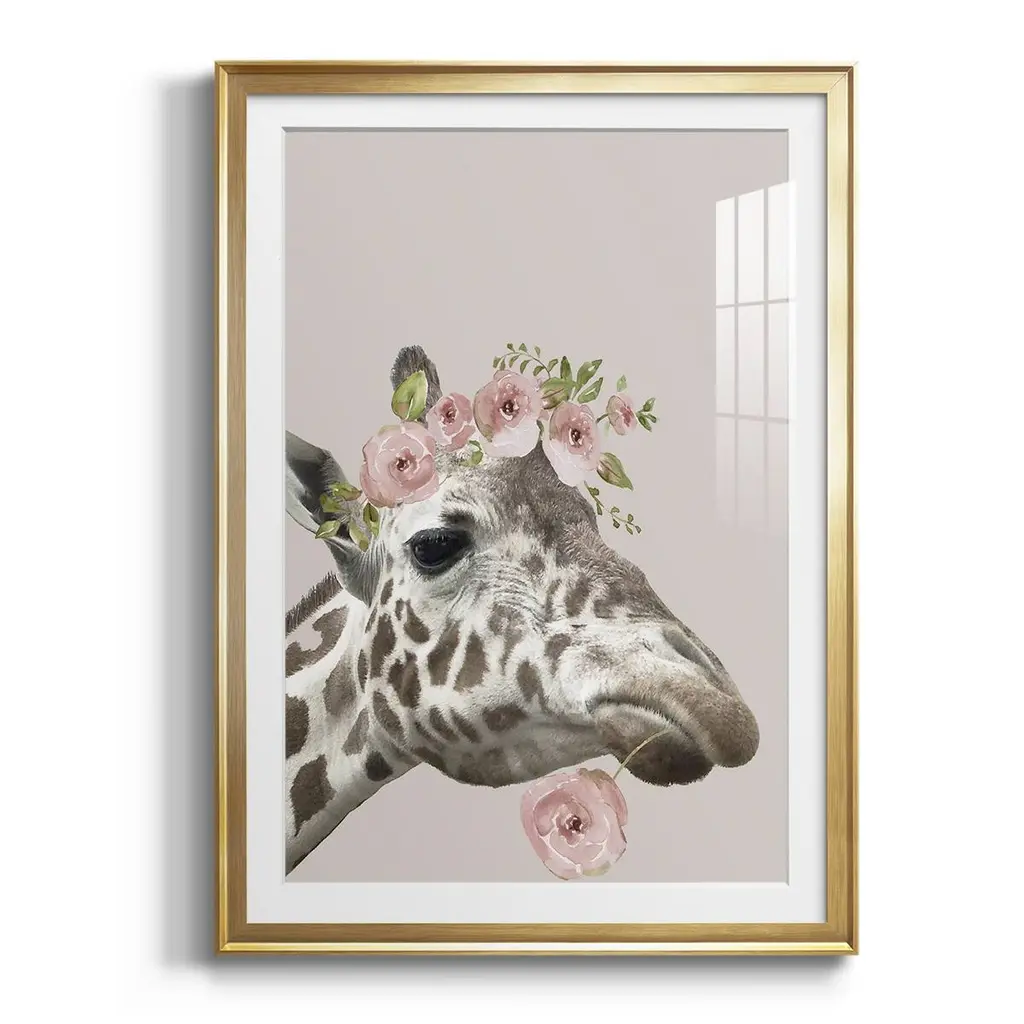 Peek A Boo Giraffe II Premium Framed Print - Ready to Hang A Premium Framed Print created to last. Framed in distressed wood and available in an array of sizes and colors Featuring a beveled a solid wood stretcher bar, each piece comes ready to hand 4 SIZES AVAILABLE 30.5''X42.5'' - Overall Size 26.5'X36.5'' - Overall Size 22.5''x30.5'' - Overall Size 18.5''x24.5'' - Overall Size Each piece is made to order. Each piece comes with hanging hardware. Made in the USA Ready to Hang Giclee Paper Print Acrylic Glass Beveled Matt Board