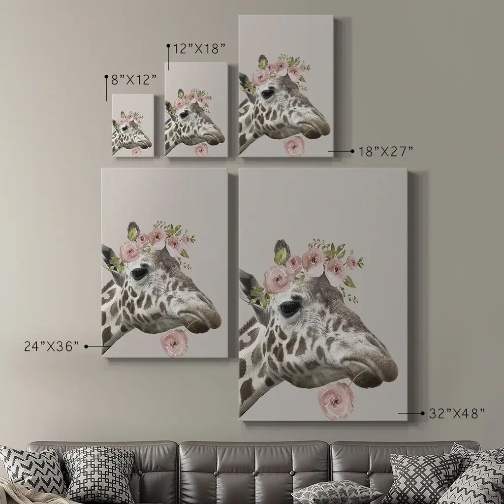 Peek A Boo Giraffe II Premium Gallery Wrapped Canvas - Ready to Hang A premium hand stretched gallery wrapped canvas print created to last. Featuring a beveled a solid wood stretcher bar, each piece comes ready to hand 6 SIZES AVAILABLE 8''X12'' - Overall Size 12''X18'' - Overall Size 18''X27'' - Overall Size 24''x36'' - Overall Size 32''x48'' - Overall Size 40''x60'' - Overall Size Each piece is made to order. Built to Last Each piece comes ready to hang Solid wood stretcher Fade and Water resistant Made domestically
