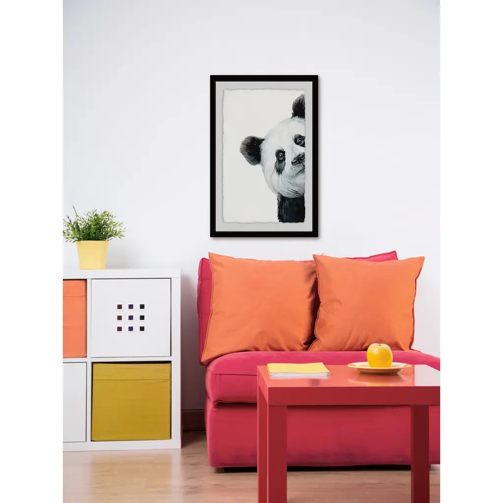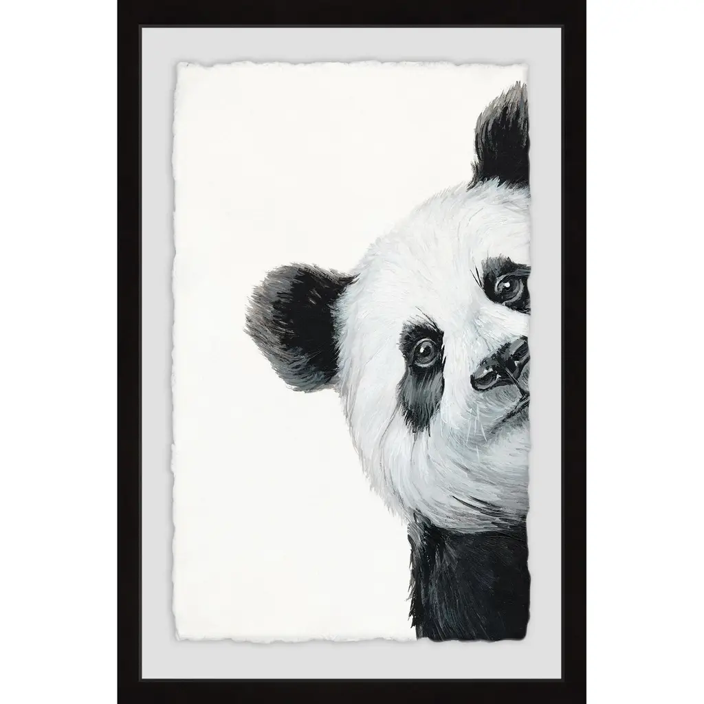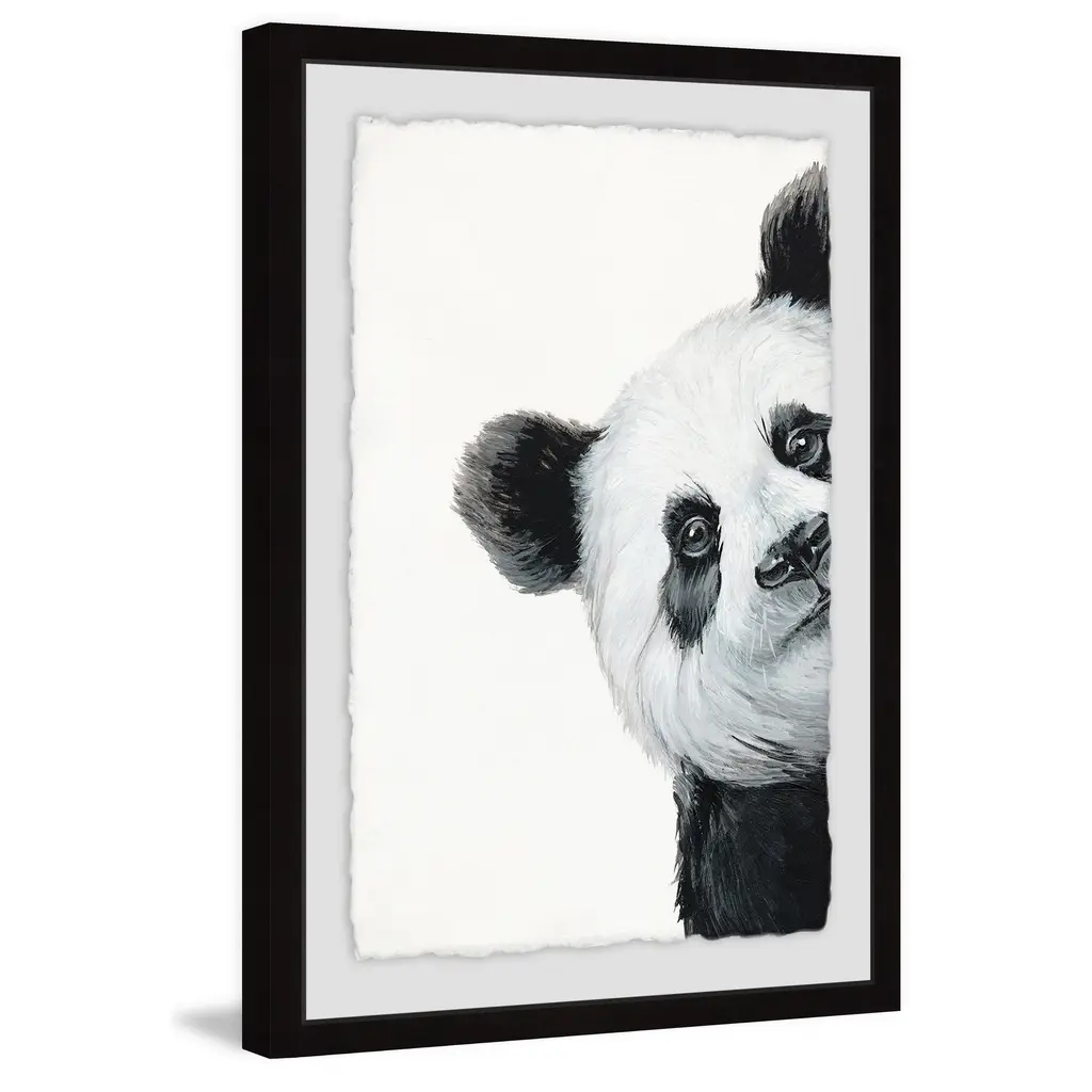 'Peekaboo Panda' Framed Painting Print - Multi-Color - 20 X 30
