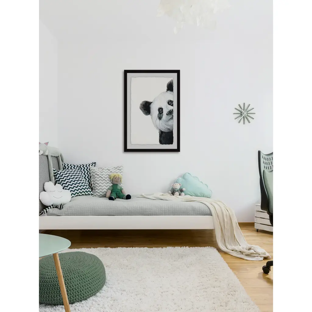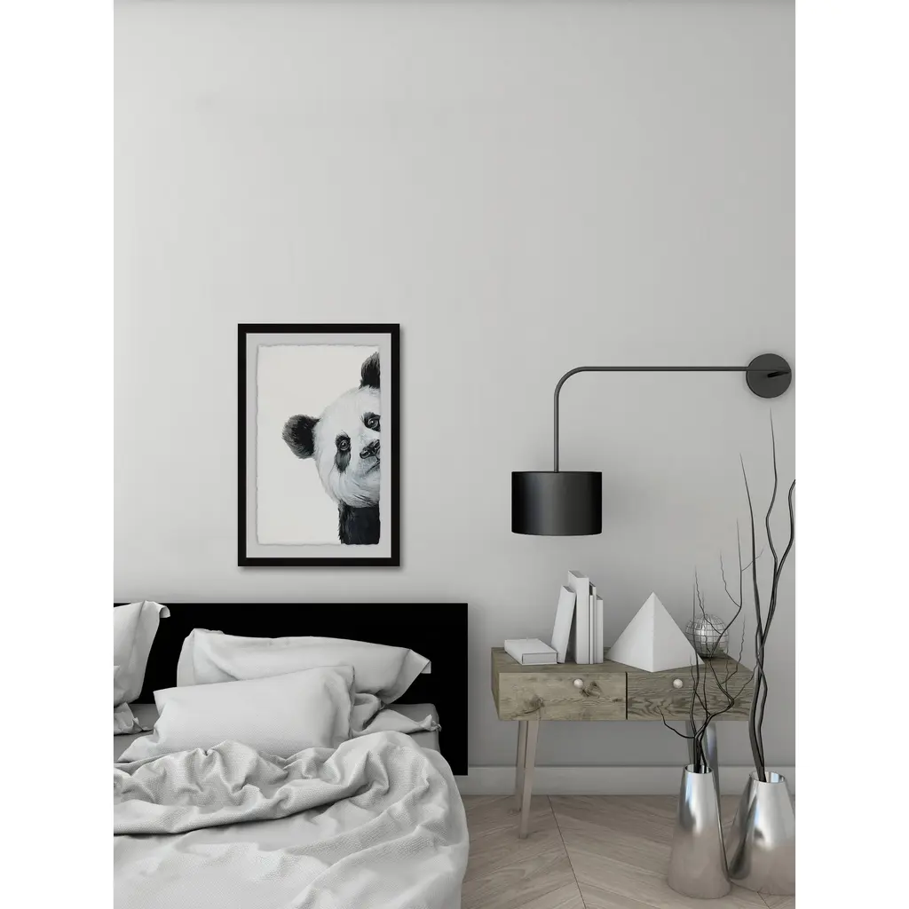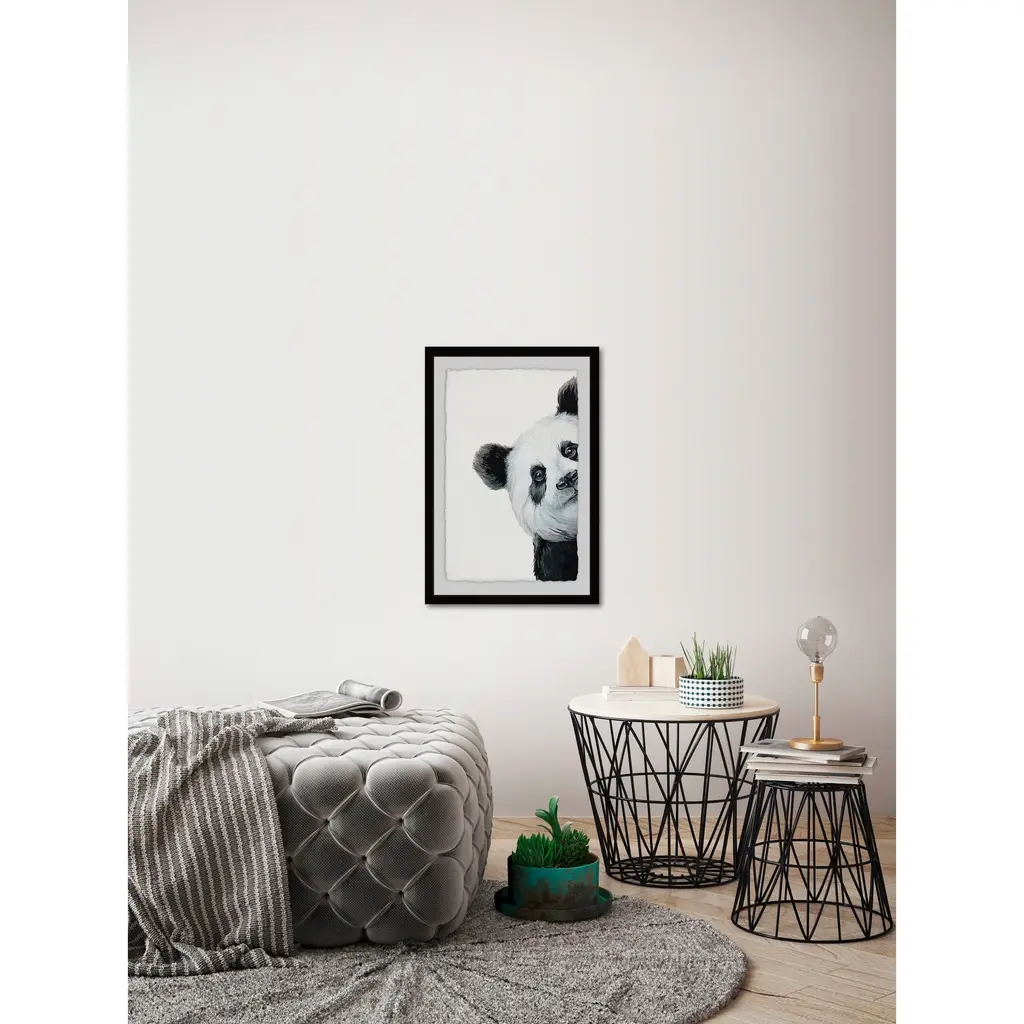 'Peekaboo Panda' Framed Painting Print - Multi-Color - 20 X 30