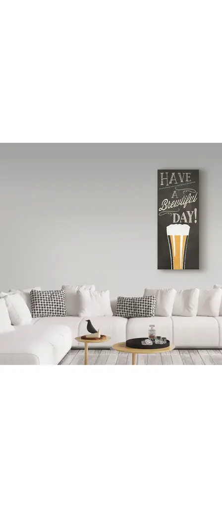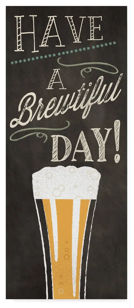 Artist: Pela StudioSubject: CuisineStyle: Modern RusticProduct Type: Gallery-Wrapped Canvas ArtMade in USAThis ready to hang, gallery-wrapped art piece features a chalkboard sign with the phrase "Have a Brewtiful Day!" over a glass of beer.Prominent Colors: Green, Gray, White, Yellow, BlackPela Studio is made up of like-minded artists based in the US and Canada, combining current trends and classic design to create a unique style. Using its knowledge of home decor, client feedback, and sharp eye for style, Pela Studio creates custom imagery to fit nearly any look or program. With combined experience of over 30 years, this studio group of artists creates an ever expanding portfolio of successful artwork - and has fun doing it! Its mission is to allow consumers to express their creative side and bring new and unique styles to the home.Giclee (jee-clay) is an advanced printmaking process for creating high quality fine art reproductions. The attainable excellence that Giclee printmaking affords makes the reproduction virtually indistinguishable from the original piece. The result is wide acceptance of Giclee by galleries, museums, and private collectors. Gallery wrap is a method of stretching an artist's canvas so that the canvas wraps around the sides and is secured a hidden, wooden frame. This method of stretching and preparing a canvas allows for a frameless presentation of the finished painting.
