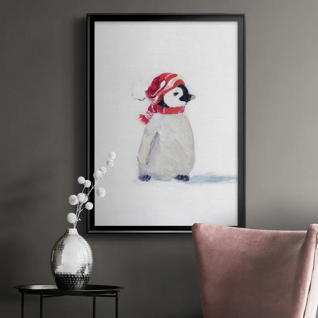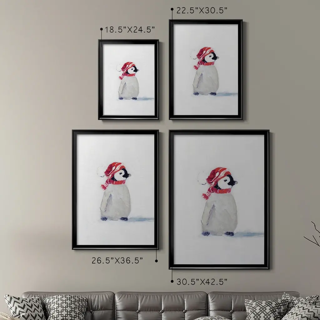 Penguin Play I Premium Framed Print - Ready to Hang A Premium Framed Print created to last. Framed in distressed wood and available in an array of sizes and colors Featuring a beveled a solid wood stretcher bar, each piece comes ready to hand 4 SIZES AVAILABLE 30.5''X42.5'' - Overall Size 26.5'X36.5'' - Overall Size 22.5''x30.5'' - Overall Size 18.5''x24.5'' - Overall Size Each piece is made to order. Each piece comes with hanging hardware. Made in the USA Ready to Hang
