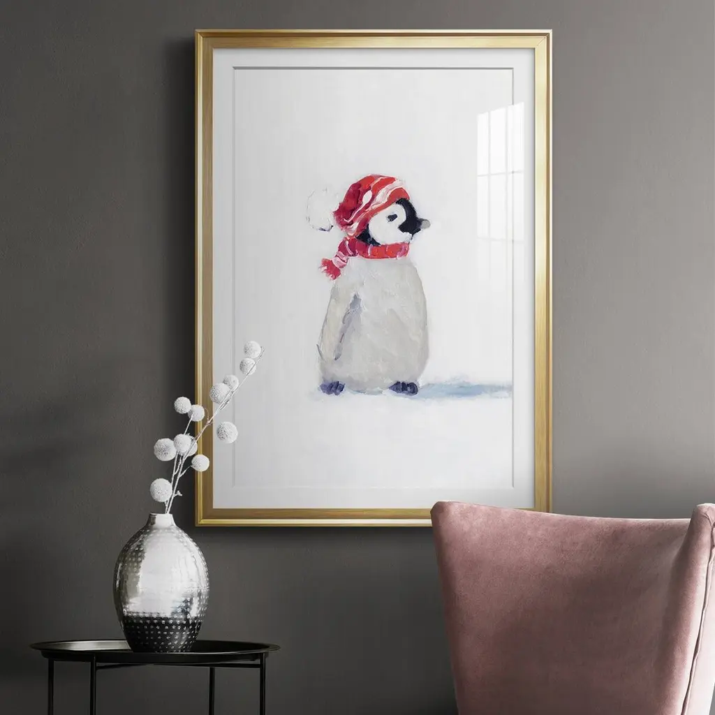 Penguin Play I Premium Framed Print - Ready to Hang A Premium Framed Print created to last. Framed in distressed wood and available in an array of sizes and colors Featuring a beveled a solid wood stretcher bar, each piece comes ready to hand 4 SIZES AVAILABLE 30.5''X42.5'' - Overall Size 26.5'X36.5'' - Overall Size 22.5''x30.5'' - Overall Size 18.5''x24.5'' - Overall Size Each piece is made to order. Each piece comes with hanging hardware. Made in the USA Ready to Hang Giclee Paper Print Acrylic Glass Beveled Matt Board