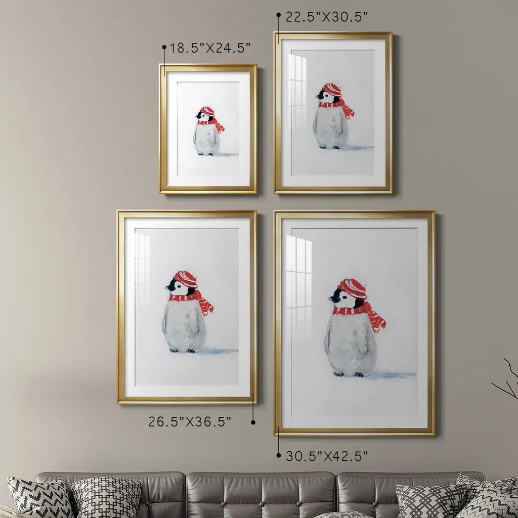 Penguin Play II Premium Framed Print - Ready to Hang A Premium Framed Print created to last. Framed in distressed wood and available in an array of sizes and colors Featuring a beveled a solid wood stretcher bar, each piece comes ready to hand 4 SIZES AVAILABLE 30.5''X42.5'' - Overall Size 26.5'X36.5'' - Overall Size 22.5''x30.5'' - Overall Size 18.5''x24.5'' - Overall Size Each piece is made to order. Each piece comes with hanging hardware. Made in the USA Ready to Hang Giclee Paper Print Acrylic Glass Beveled Matt Board