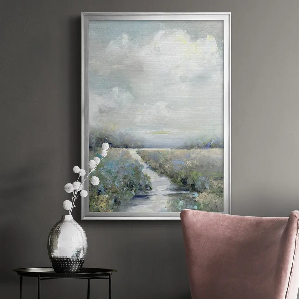 Peninsula Path Premium Framed Print - Ready to Hang A Premium Framed Print created to last. Framed in distressed wood and available in an array of sizes and colors Featuring a beveled a solid wood stretcher bar, each piece comes ready to hand 4 SIZES AVAILABLE 30.5''X42.5'' - Overall Size 26.5'X36.5'' - Overall Size 22.5''x30.5'' - Overall Size 18.5''x24.5'' - Overall Size Each piece is made to order. Each piece comes with hanging hardware. Made in the USA Ready to Hang