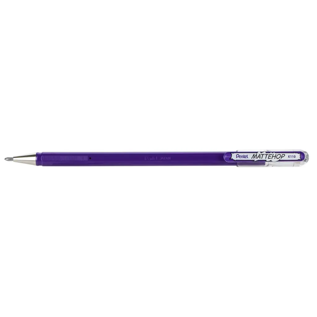 Pentel Arts Hybrid MATTEHOP Gel Roller, 1.0mm, Matte Violet Ink, Pack of 12 | Unleash bold creativity with MATTEHOP gel pens, the revolutionary upgrade in gel ink technology that transforms your illustrations with high-impact color and stunning opacity. Designed for artists, illustrators, and stationery lovers alike, MATTEHOP pens use innovative micro hollow resin bead technology to deliver a rich, matte finish that pops on both light and dark paper. The vibrant, high-opacity ink glides smoothly from the 1.0mm tip (producing a crisp 0.5mm line), making it perfect for comic book-style artwork, detailed sketches, and eye-catching designs. Whether you're working on standard, photographic, or coated paper, MATTEHOP brings your ideas to life in a whole new way. Available in a spectrum of 21 vivid colors, these pens are the ultimate tool for standout expression.