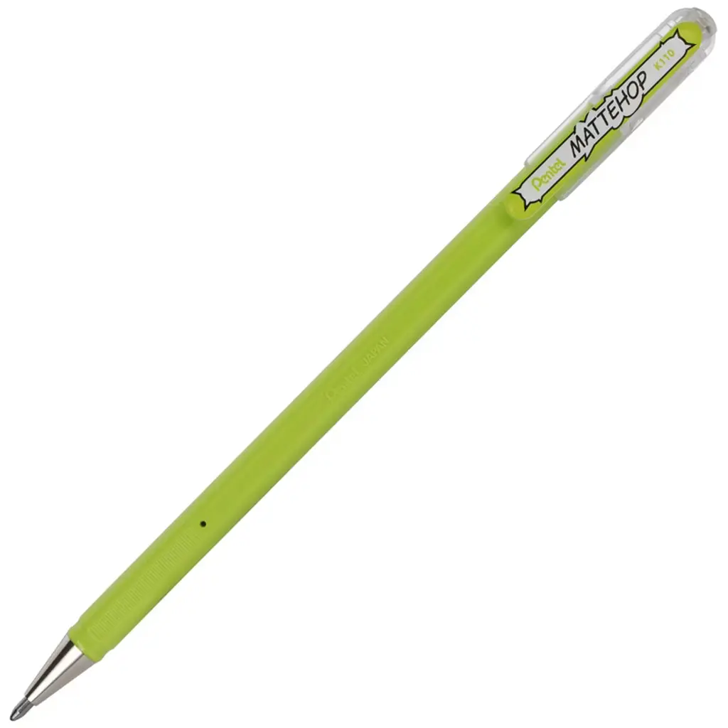 Pentel Arts Hybrid MATTEHOP Gel Roller, 1.0mm, Matte Yellow Ink, Pack of 12 | Unleash bold creativity with MATTEHOP gel pens, the revolutionary upgrade in gel ink technology that transforms your illustrations with high-impact color and stunning opacity. Designed for artists, illustrators, and stationery lovers alike, MATTEHOP pens use innovative micro hollow resin bead technology to deliver a rich, matte finish that pops on both light and dark paper. The vibrant, high-opacity ink glides smoothly from the 1.0mm tip (producing a crisp 0.5mm line), making it perfect for comic book-style artwork, detailed sketches, and eye-catching designs. Whether you're working on standard, photographic, or coated paper, MATTEHOP brings your ideas to life in a whole new way. Available in a spectrum of 21 vivid colors, these pens are the ultimate tool for standout expression.