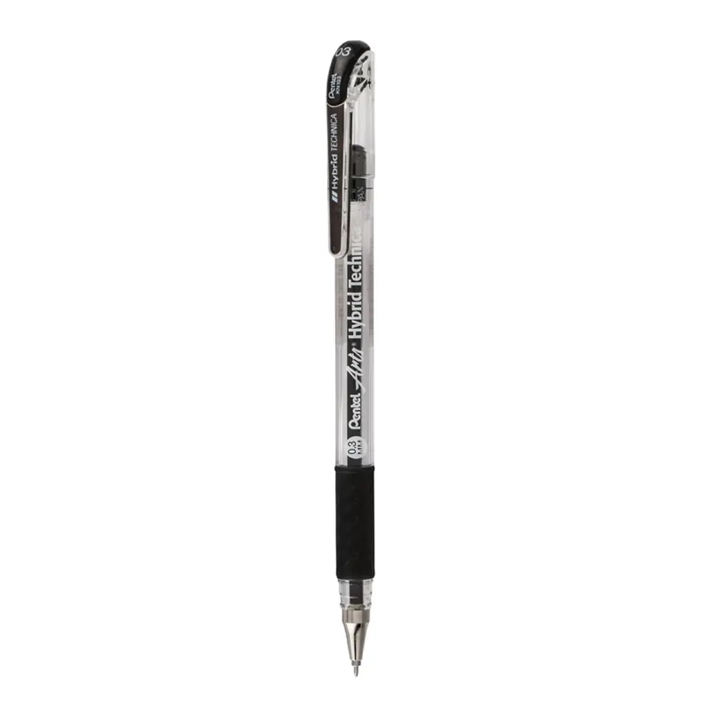 Pentel Arts Hybrid Technica (0.3mm) Gel Pen, Black Ink, Pack Of 12