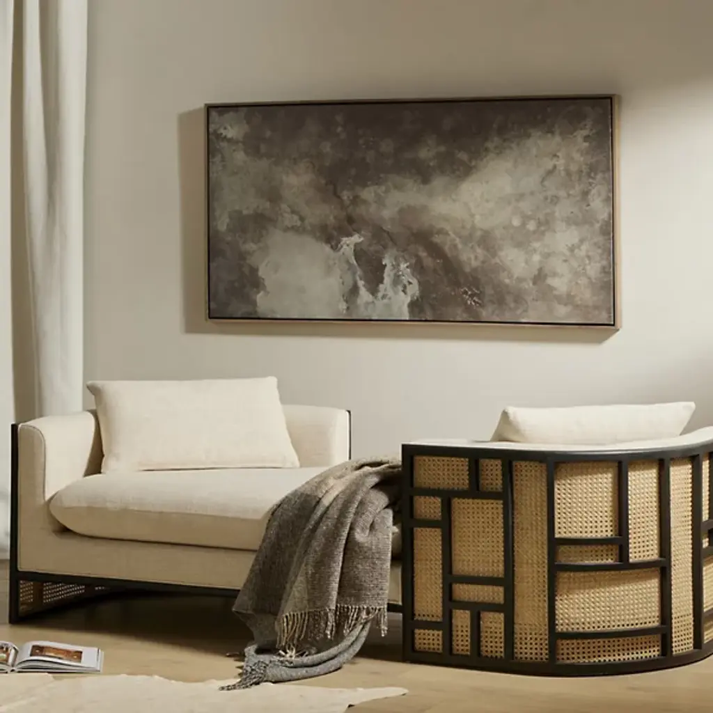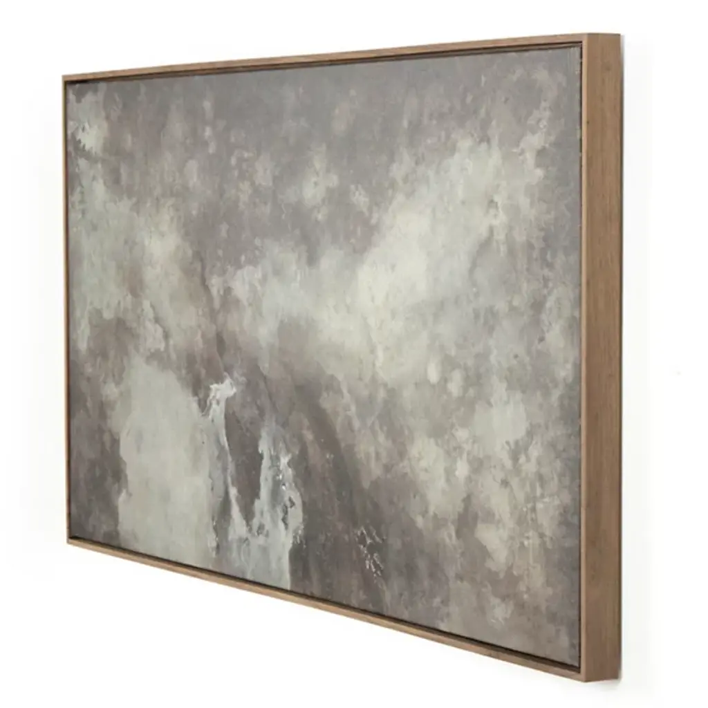The Penumbra IV Wall Art from Four Hands reveals nature's raw power through abstract expression. Rendered in both vertical and horizontal orientations, the composition reflects Matera's practice of painting exclusively outdoors. Weather patterns guide each brushstroke, creating energetic marks across the canvas. The rustic walnut floater frame enhances the artwork's dimensional presence. Created in Austin, this mixed media piece embodies the Mexico City artist's commitment to channeling environmental forces. Natural elements become artistic tools, transforming atmospheric conditions into remarkable artwork.