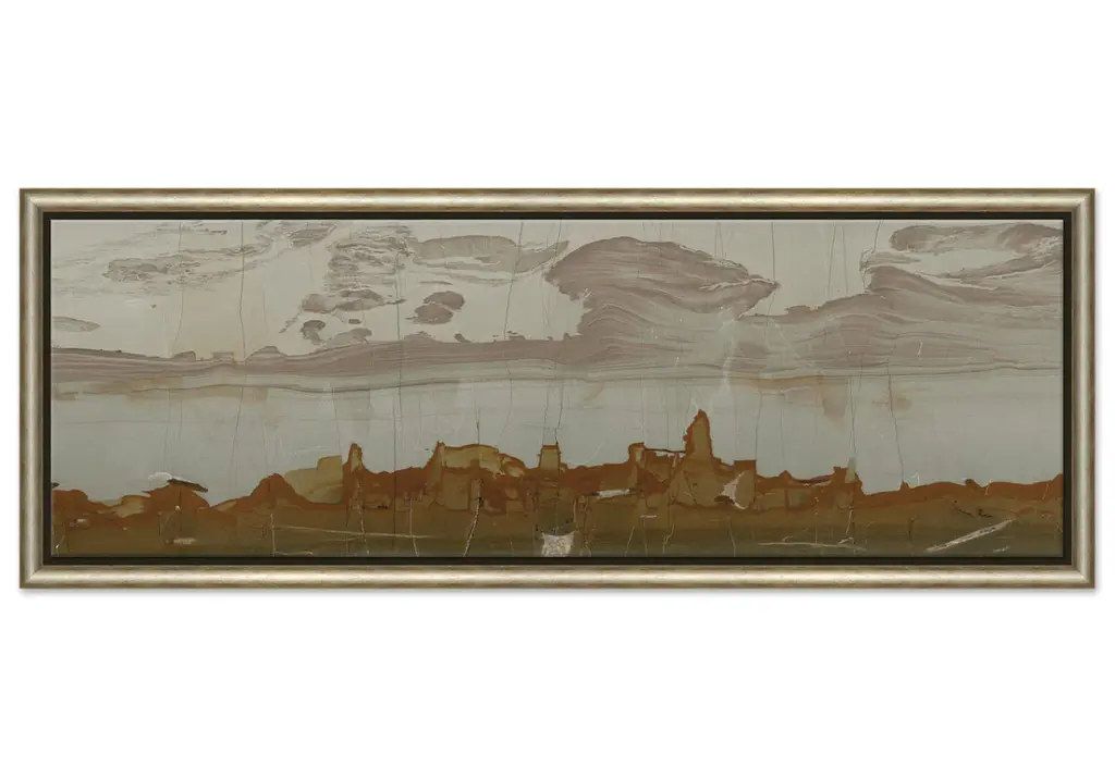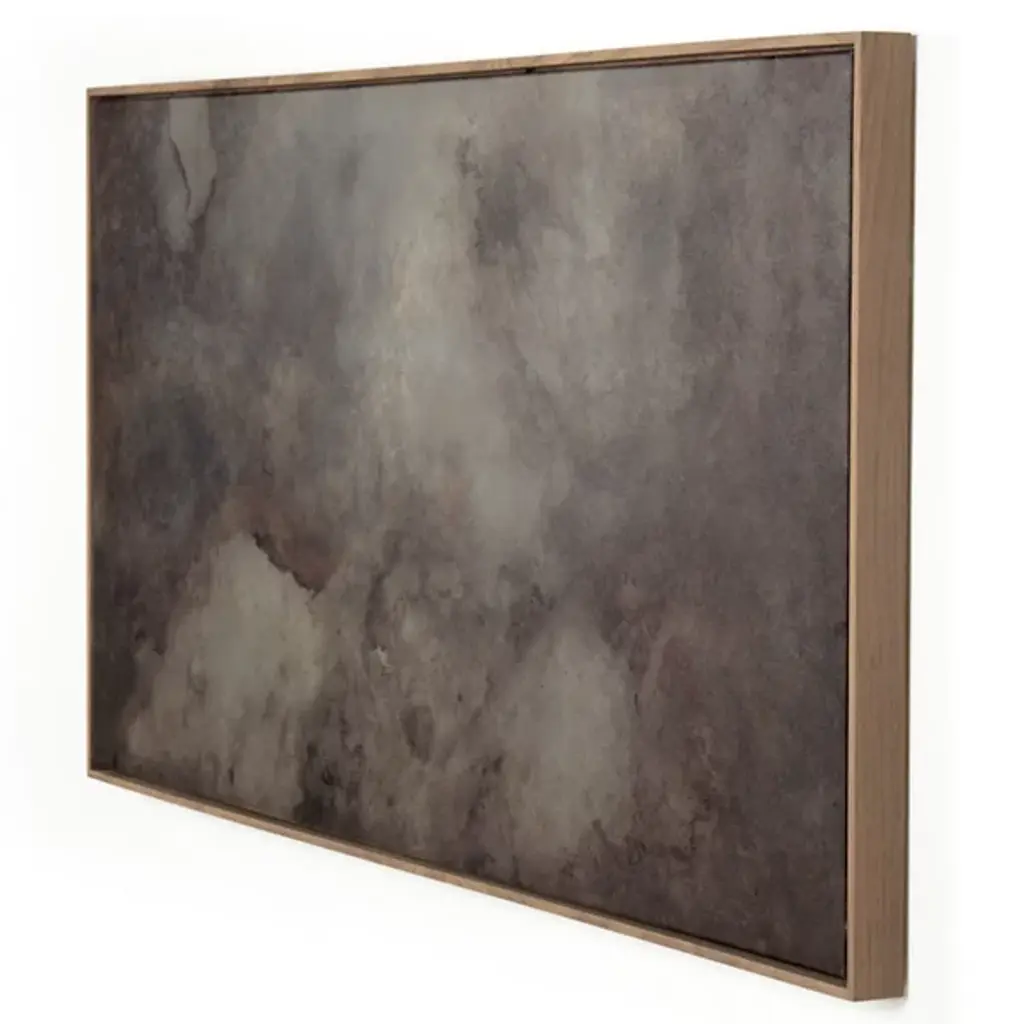 The Penumbra V Wall Art from Four Hands reveals the vibrant relationship between the artist and the elements. Matera's outdoor painting process allows natural forces to shape this horizontal composition on matte canvas. The rustic walnut floater frame provides a foundation for the Mexico City artist's expressive marks and gestures. This Austin-made piece captures the spontaneous dialogue between creative intention and environmental influence. Each layer of media responds to weather conditions, resulting in an organic abstraction that preserves moments of artistic synchronicity.