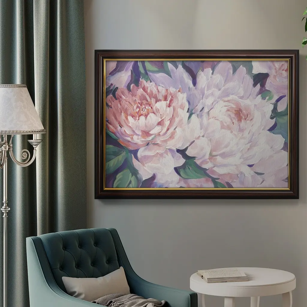 Peonies In Bloom I Premium Framed Canvas- Ready To Hang - 18x27 - Mahogany
