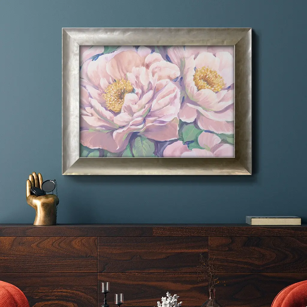 Peonies In Bloom Ii Premium Framed Canvas- Ready To Hang - 18x27 - Silver