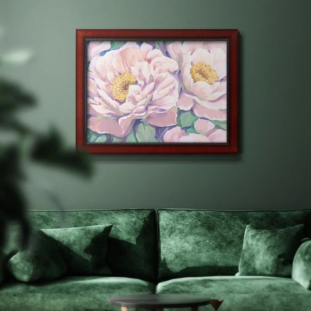 Peonies In Bloom Ii Premium Framed Canvas- Ready To Hang - 24x36 - Mahogany