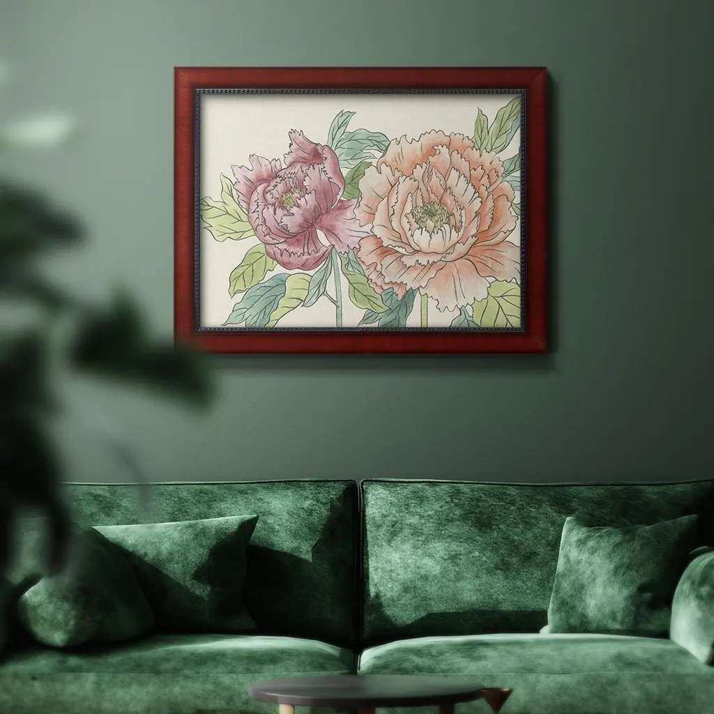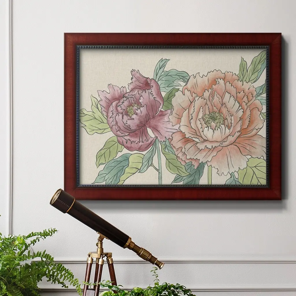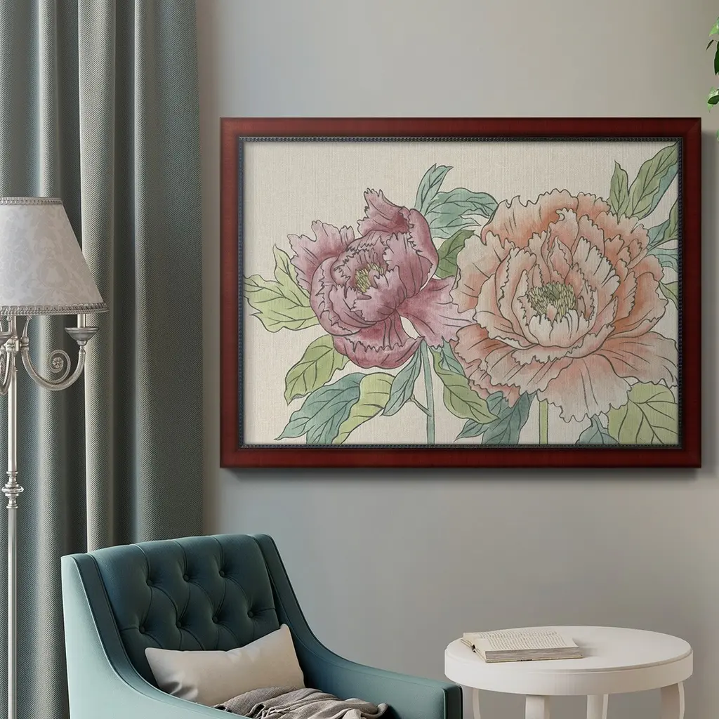 Peony Blooms Iv Premium Framed Canvas- Ready To Hang - 18x27 - Mahogany