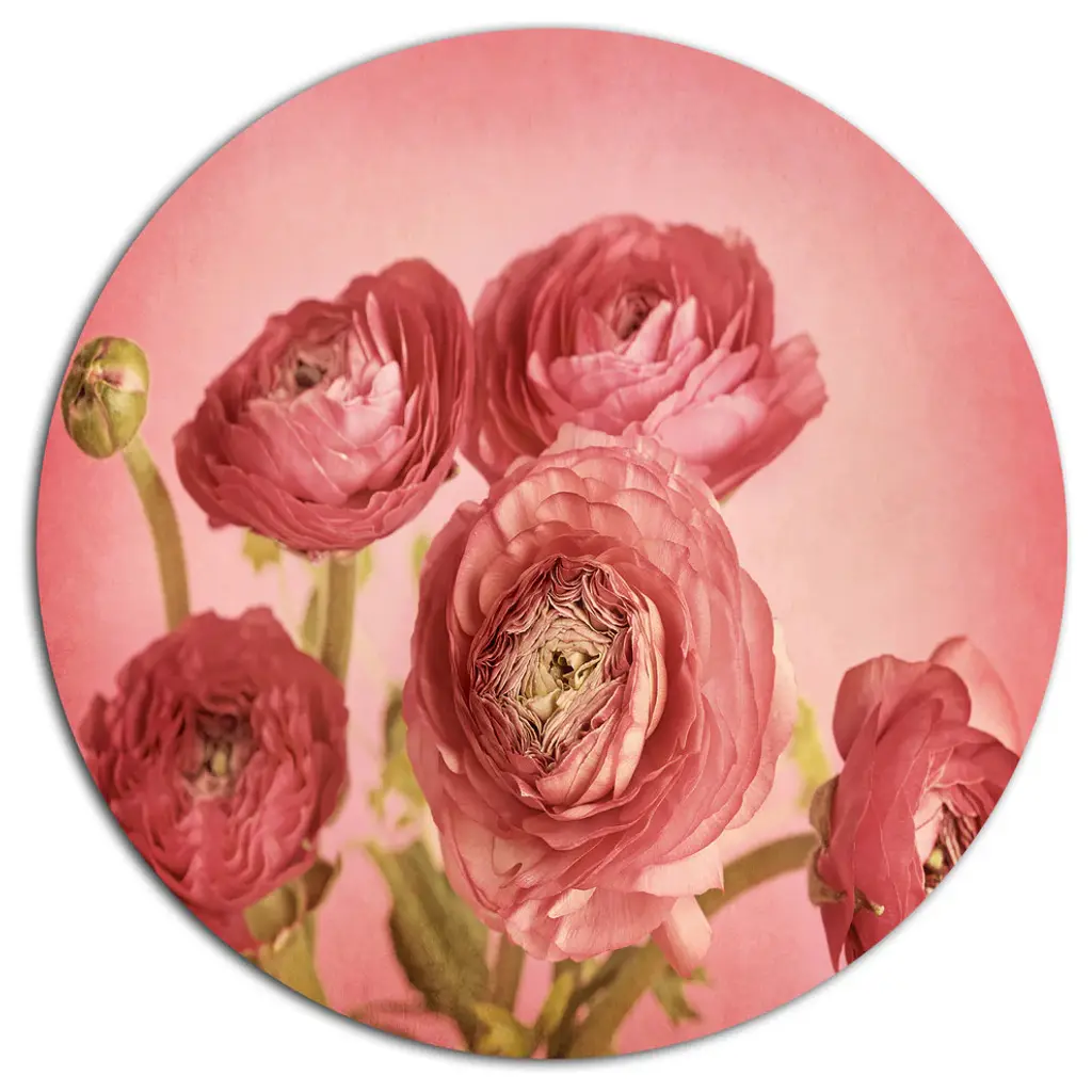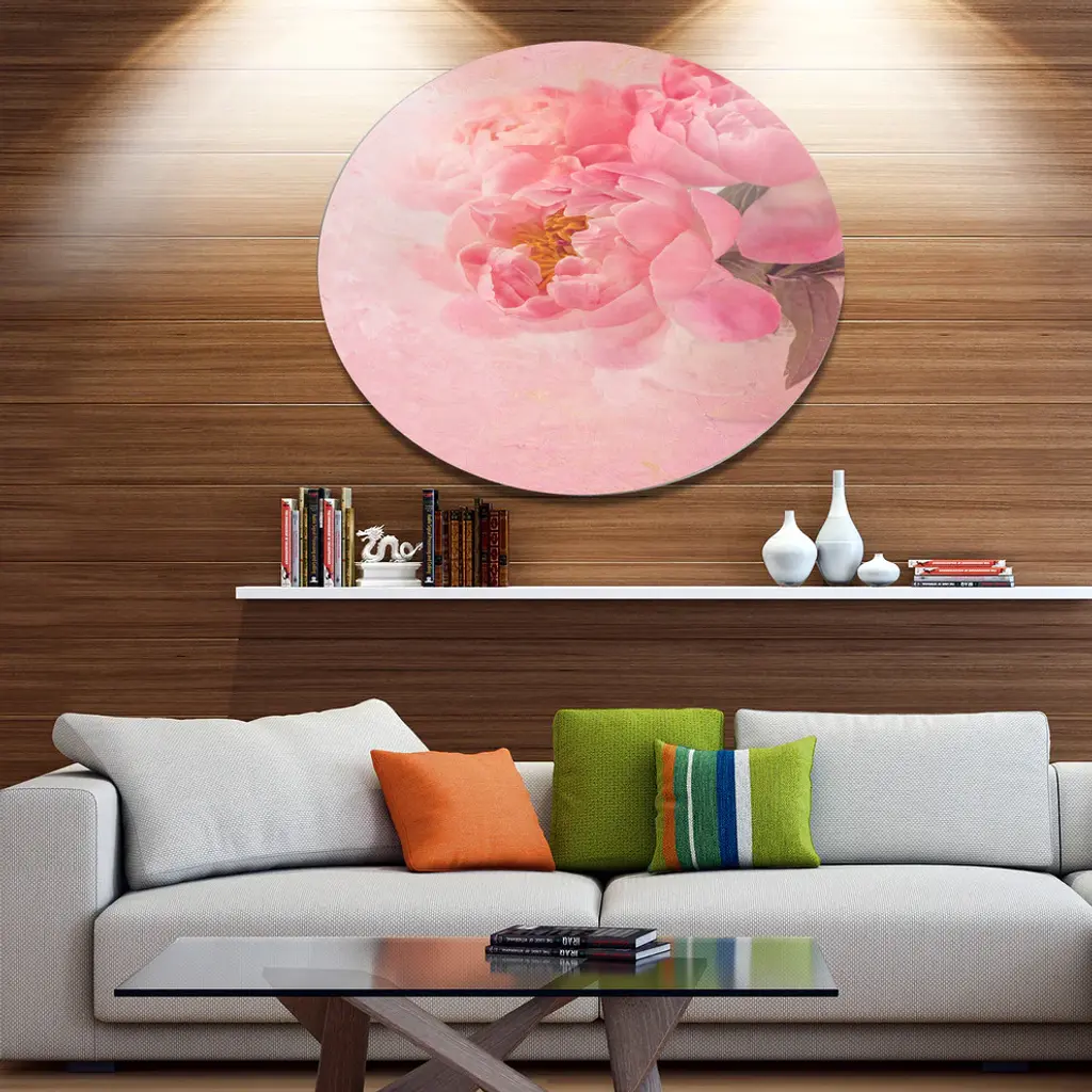 Bring Contemporary Abstraction to your home with this large Circle Metal wall art. This Peony Flowers on Pink Background Metal Artwork makes it the focal point of any room or office. - White Gloss Coating ensures colors are extra vibrant with light reflection.- Aluminum grade Sheet Metal with 1 inch mounting frame on the back giving the illusion that the artwork is floating on the wall..- Mounting Brackets are included along with instructions.- High Quality Digital images are created directly into a glossy aluminum panel producing a stunning and captivating print into the glossy finish of the metal.- Water, Fire and Scratch resistant HD Aluminum panels.- Looks better than any photo paper and guaranteed to last at least 20 years- Easy to clean with a microfiber cloth. Colors are far superior to regular Canvas Art. - Easy to Hang