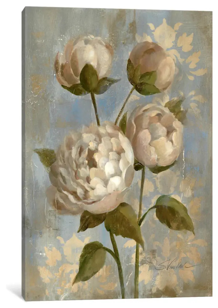 "Peony On Soft Blue Gallery" By Silvia Vassileva, 40x26x1.5"