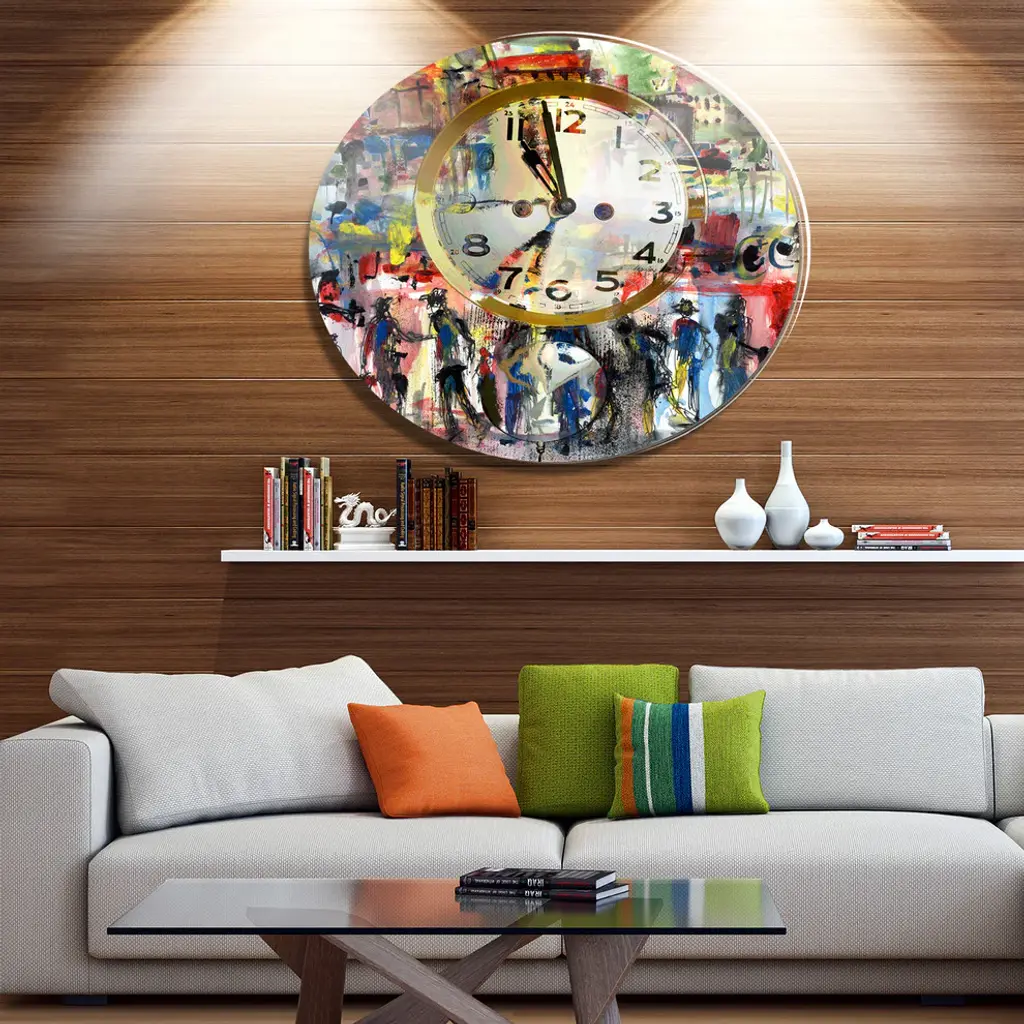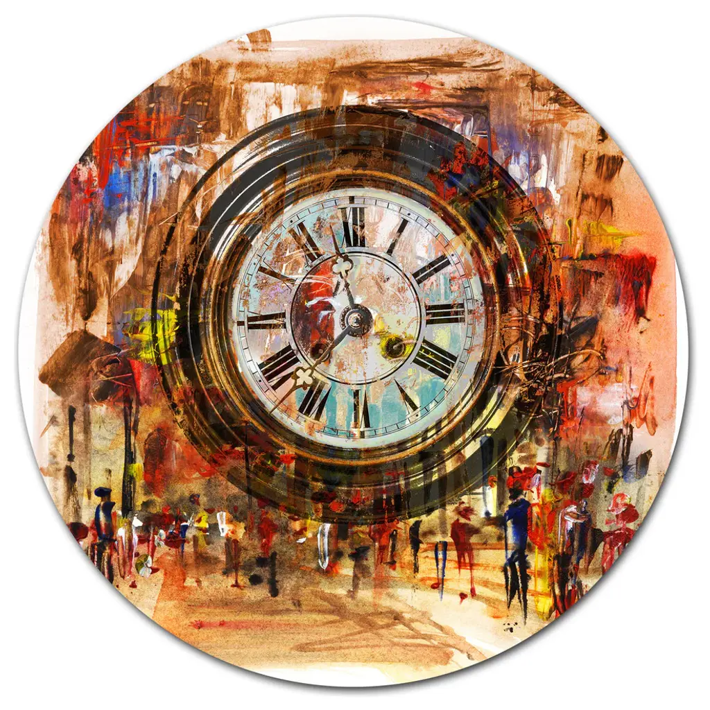 Bring Contemporary Abstraction to your home with this large Circle Metal wall art. This People and Time Acrylic Watercolor Metal Artwork makes it the focal point of any room or office. - White Gloss Coating ensures colors are extra vibrant with light reflection.- Aluminum grade Sheet Metal with 1 inch mounting frame on the back giving the illusion that the artwork is floating on the wall..- Mounting Brackets are included along with instructions.- High Quality Digital images are created directly into a glossy aluminum panel producing a stunning and captivating print into the glossy finish of the metal.- Water, Fire and Scratch resistant HD Aluminum panels.- Looks better than any photo paper and guaranteed to last at least 20 years- Easy to clean with a microfiber cloth. Colors are far superior to regular Canvas Art. - Easy to Hang