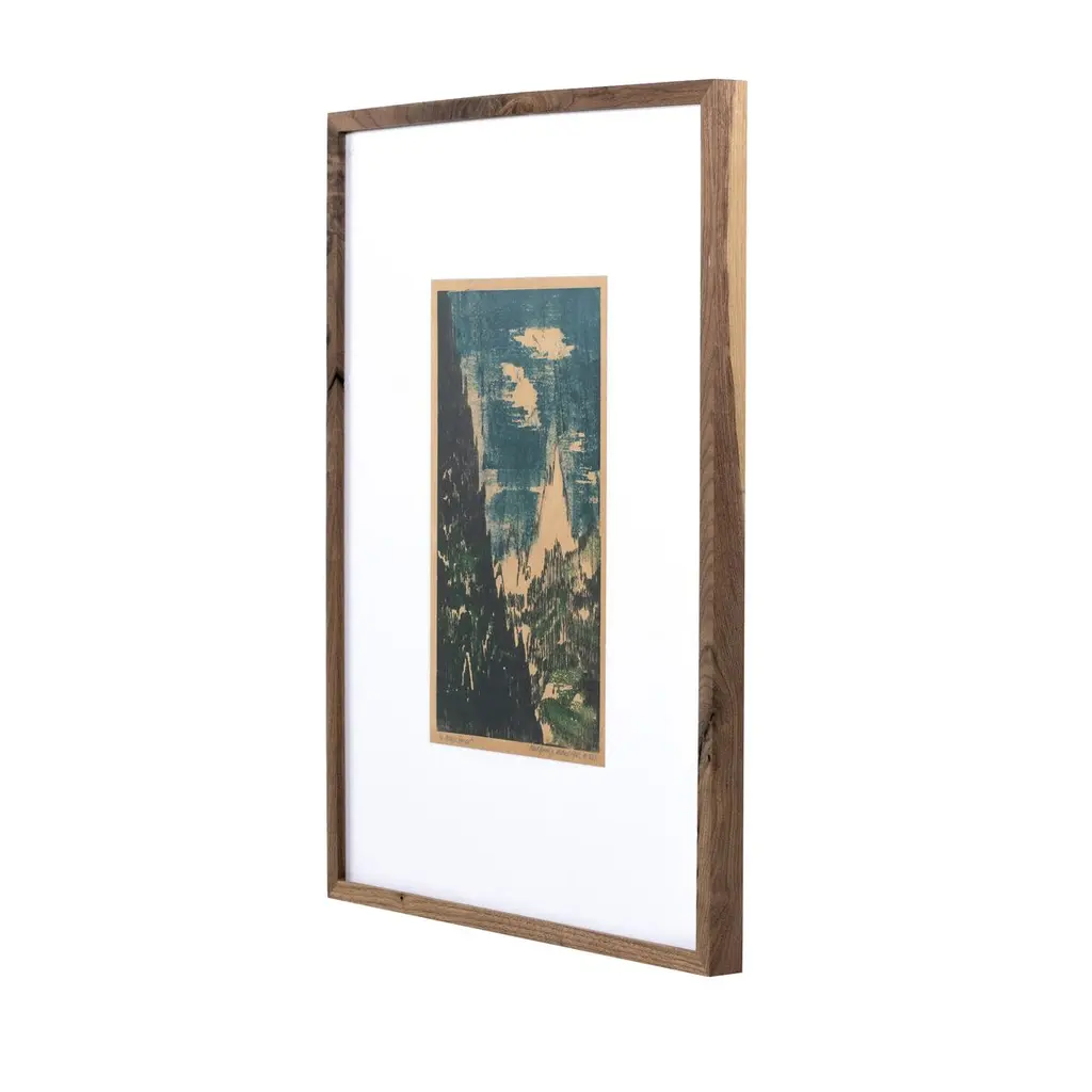 A Latvian native with a Doctorate in Architecture, the late Pepi Sprohge worked in a range of mediums, from paper lithographs to marker drawings. A vintage piece of his from 1962 is given new life, and signed, dated and titled by the artist. Framed within rustic walnut. Handmade in Austin, Texas.