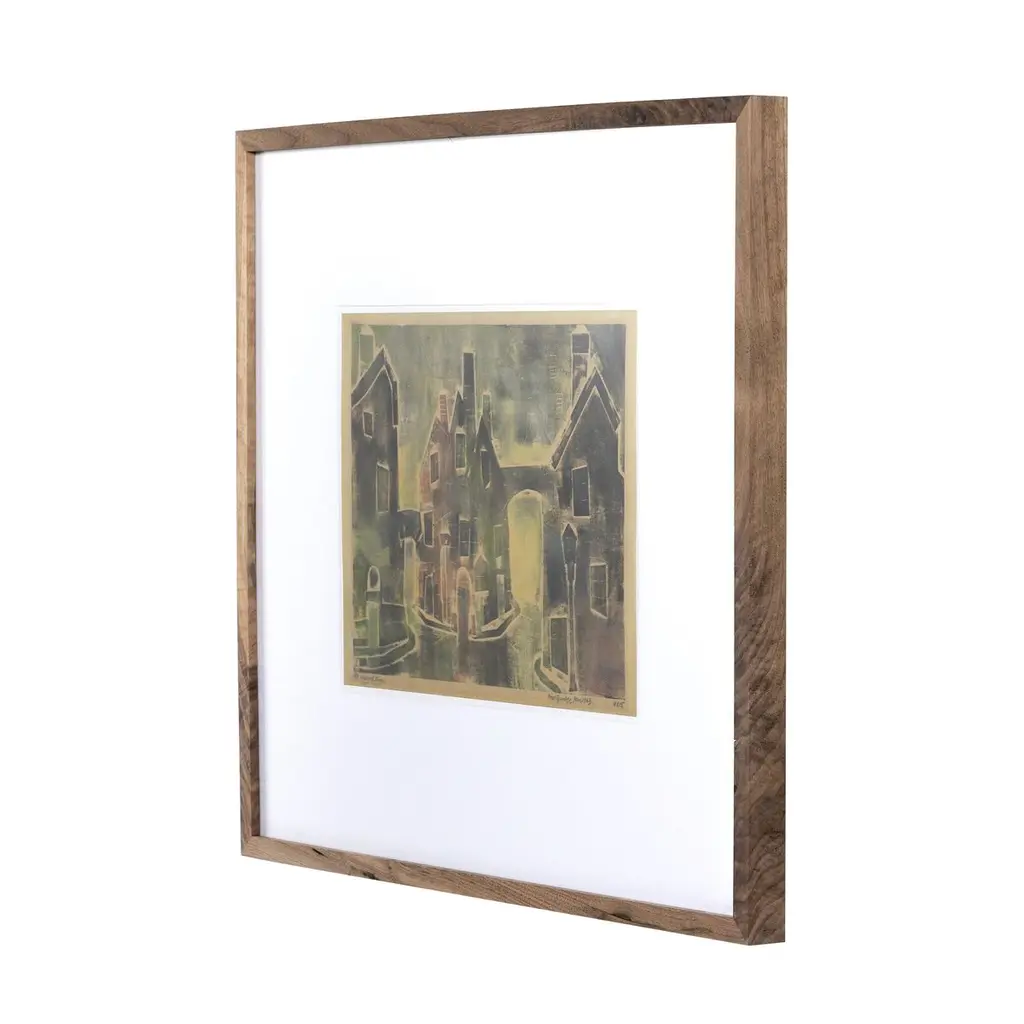 A Latvian native with a Doctorate in Architecture, the late Pepi Sprohge worked in a range of mediums, from paper lithographs to marker drawings. A vintage piece of his from 1963 is given new life, and signed, dated and titled by the artist. Framed for a gallery-quality look. Handmade in Austin, Texas.