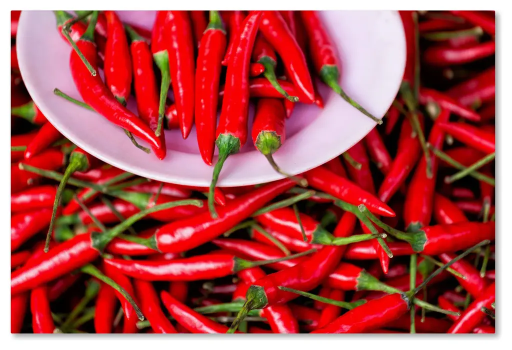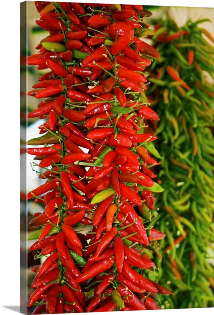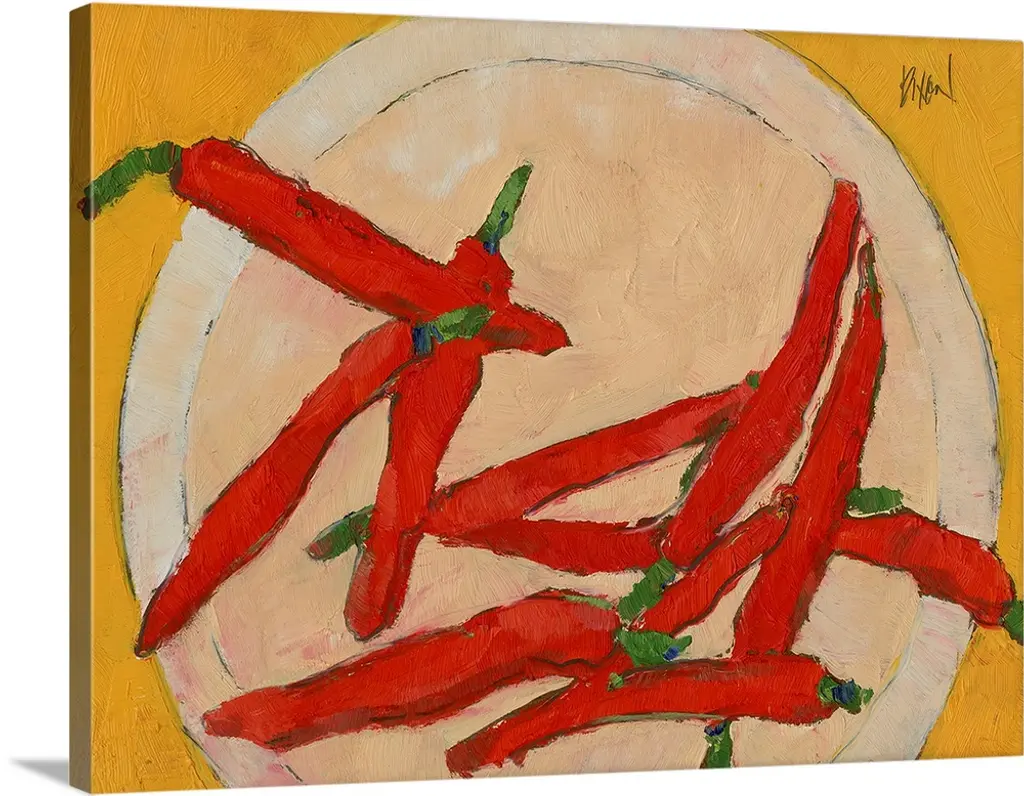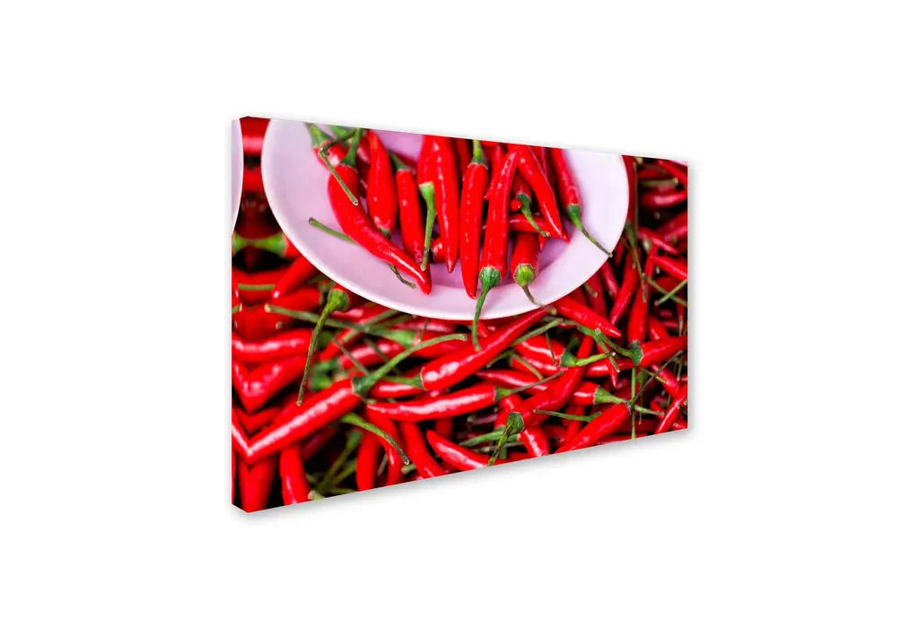 Artist: Robert Harding Picture LibrarySubject: CuisineStyle: Modern & ContemporaryProduct Type: Gallery-Wrapped Canvas ArtMade in USAThis ready to hang, gallery-wrapped art piece features peppers sitting on a plate at the top of the frame.Passionate travel photographer Robert Harding started Robert Harding World Imagery in 1974, staffing his agency purely with travel and photography obsessed individuals. This includes over 1100 photographers and videographers working in the far-flung corners of the globe. These personally beloved images convey the adventurous travel stories and experiences of the wonderful/crazy world out there. He has seen the travel and photography industries change almost beyond recognition and his camera people are constantly exploring where its all going next.Giclee (jee-clay) is an advanced printmaking process for creating high quality fine art reproductions. The attainable excellence that Giclee printmaking affords makes the reproduction virtually indistinguishable from the original piece. The result is wide acceptance of Giclee by galleries, museums, and private collectors. Gallery wrap is a method of stretching an artist's canvas so that the canvas wraps around the sides and is secured a hidden, wooden frame. This method of stretching and preparing a canvas allows for a frameless presentation of the finished painting.Materials: Canvas, 100% Cotton, Stretcher Bars, Poplar