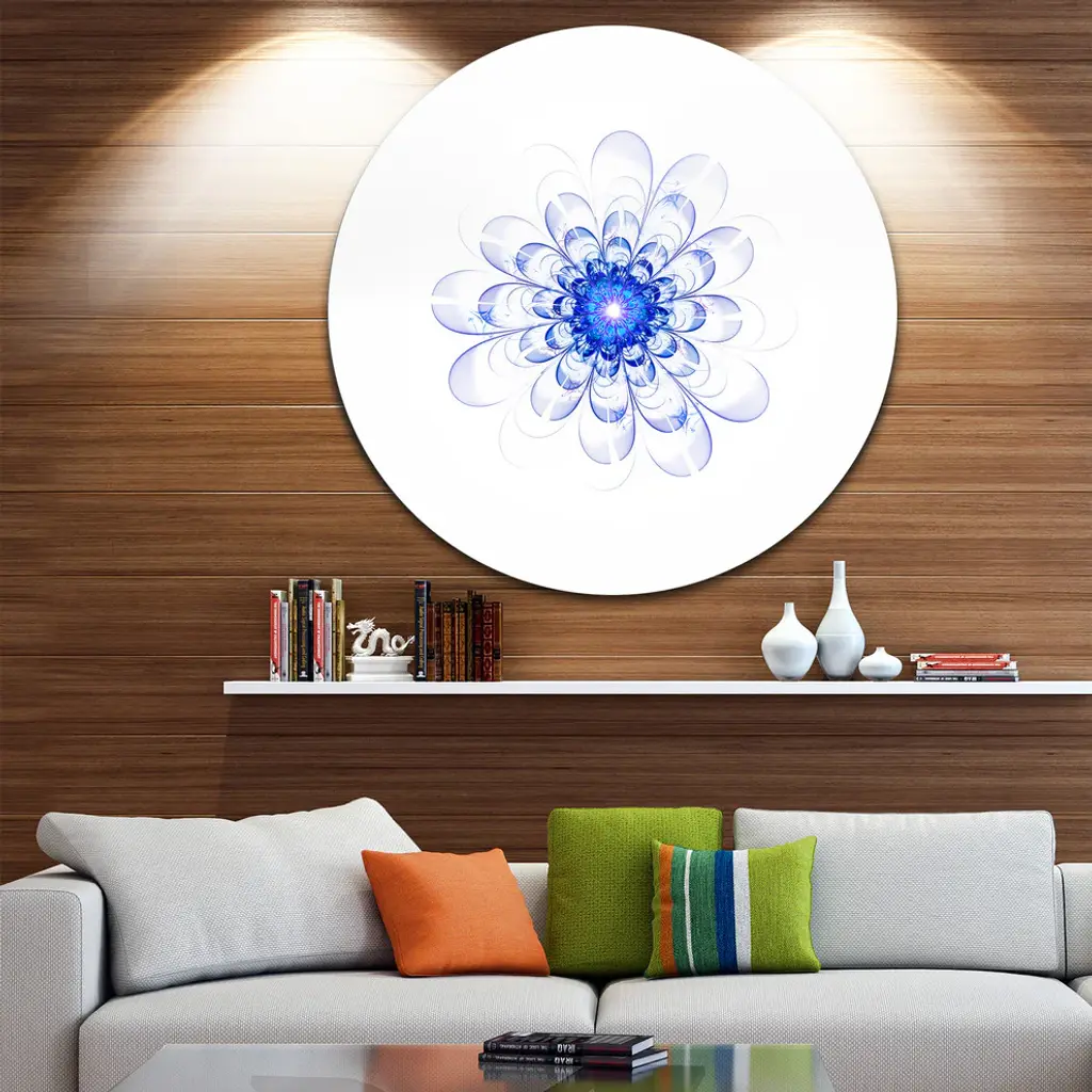 Perfect Glowing Fractal Flower In Blue, Floral Round Wall Art, 11"