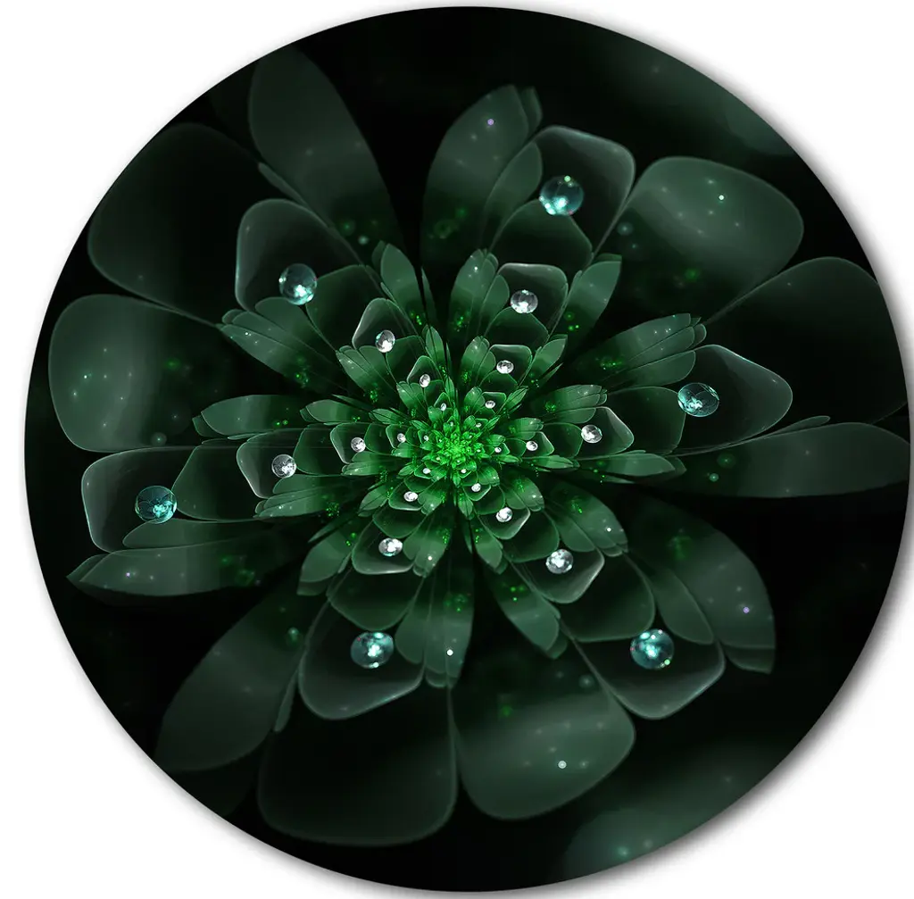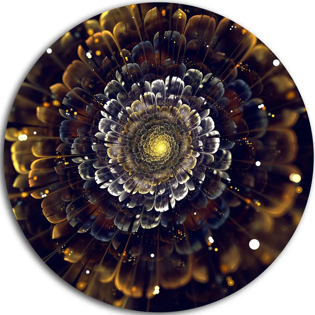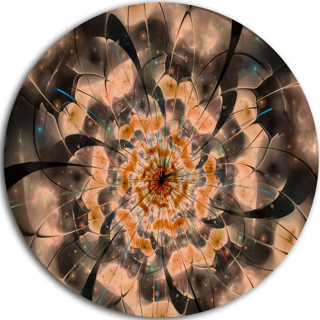 Bring Contemporary Abstraction to your home with this large Circle Metal wall art. This Perfect Shiny Fractal Flower in Dark Brown Metal Artwork makes it the focal point of any room or office. - White Gloss Coating ensures colors are extra vibrant with light reflection.- Aluminum grade Sheet Metal with 1 inch mounting frame on the back giving the illusion that the artwork is floating on the wall..- Mounting Brackets are included along with instructions.- High Quality Digital images are created directly into a glossy aluminum panel producing a stunning and captivating print into the glossy finish of the metal.- Water, Fire and Scratch resistant HD Aluminum panels.- Looks better than any photo paper and guaranteed to last at least 20 years- Easy to clean with a microfiber cloth. Colors are far superior to regular Canvas Art. - Easy to Hang