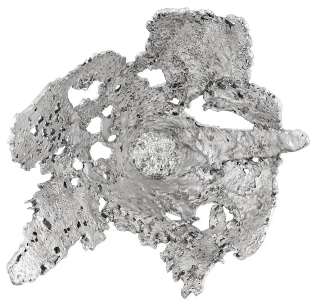 Though it is made of composite rather than metal, the Splash Bowl Perforated Silver Wall Art is a fluted decorative wall sculpture that looks as if it has been created with molten magic. The sculpture is even more powerful installed in a gallery wall arrangement, but the intricate tracery on its surface makes it powerfully beautiful when it''s hung alone. We also offer similar designs in copper and silver that we call jagged. The Splash Bowls are available as decorative vessels, as well. These explosive patterns reflect the ethos that Phillips Collection personifies: modern organic.