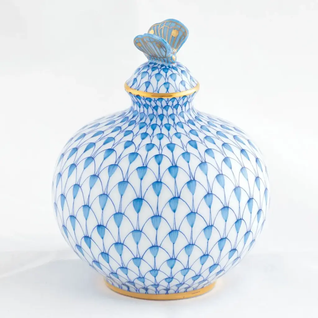 Endearing animals meek and bold, large and small, demure and majestic eagerly await the chance to melt your heart and warm your home. Each is brought to life by the skilled hands of artisans crafting and painting these charming porcelain creatures. The famous fishnet décor adorning many of the animals took form in 1858 when a Herend painter became inspired by a fishscale design he saw on a Chinese porcelain plate and painted a similar pattern onto a rooster figurine to imitate feathers. The rest is history, with the fishnet design now a Herend signature prized worldwide. Now the biggest porcelain manufactory in Europe, Herend was founded in 1826 to produce earthenware in the small Hungarian village for which it was named. At the time, Hungary was flooded with low-cost pottery, but in 1839, Mor Fischer became the Manufactory’s new owner and he decided to focus on producing dinnerware replacement pieces for Europe’s royal families to complement their valuable porcelain patterns from Germany and the Far East. As his client base grew, Fischer commissioned his artists to begin designing dinnerware patterns of their own. Queen Victoria’s 1851 purchase of a large set for Windsor Castle was a milestone, setting the stage for aristocrats throughout Europe to clamor for Herend in their estates. In the 1850s, Herend added meticulously-crafted figurines to its creations. Herend’s trademark fishnet pattern, which is widely recognized and prized as Herend’s signature design, started in 1858 when an artist who was intrigued with a Chinese plate’s fish scale design painted it onto a rooster figurine to imitate feathers.