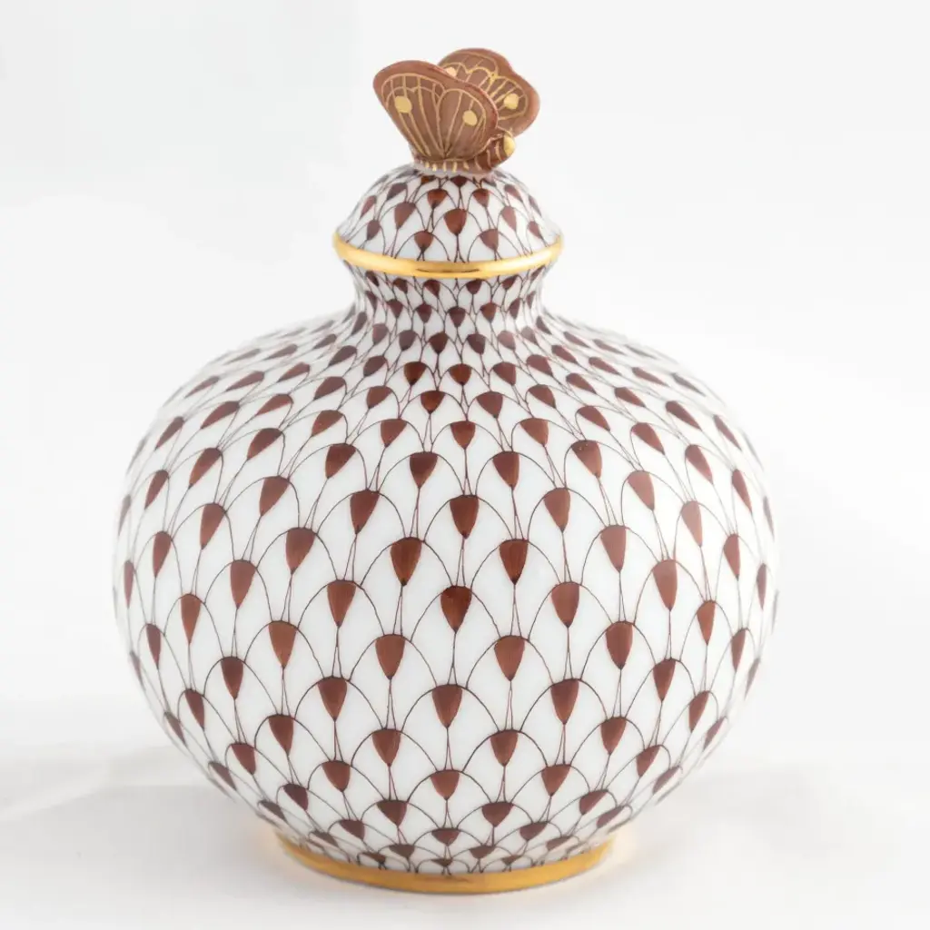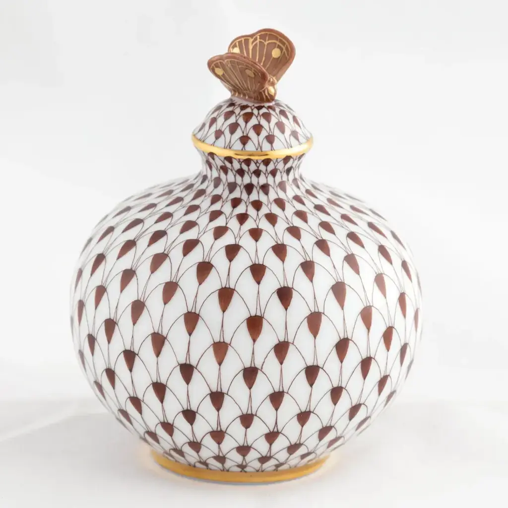 Endearing animals meek and bold, large and small, demure and majestic eagerly await the chance to melt your heart and warm your home. Each is brought to life by the skilled hands of artisans crafting and painting these charming porcelain creatures. The famous fishnet décor adorning many of the animals took form in 1858 when a Herend painter became inspired by a fishscale design he saw on a Chinese porcelain plate and painted a similar pattern onto a rooster figurine to imitate feathers. The rest is history, with the fishnet design now a Herend signature prized worldwide. Now the biggest porcelain manufactory in Europe, Herend was founded in 1826 to produce earthenware in the small Hungarian village for which it was named. At the time, Hungary was flooded with low-cost pottery, but in 1839, Mor Fischer became the Manufactory’s new owner and he decided to focus on producing dinnerware replacement pieces for Europe’s royal families to complement their valuable porcelain patterns from Germany and the Far East. As his client base grew, Fischer commissioned his artists to begin designing dinnerware patterns of their own. Queen Victoria’s 1851 purchase of a large set for Windsor Castle was a milestone, setting the stage for aristocrats throughout Europe to clamor for Herend in their estates. In the 1850s, Herend added meticulously-crafted figurines to its creations. Herend’s trademark fishnet pattern, which is widely recognized and prized as Herend’s signature design, started in 1858 when an artist who was intrigued with a Chinese plate’s fish scale design painted it onto a rooster figurine to imitate feathers.